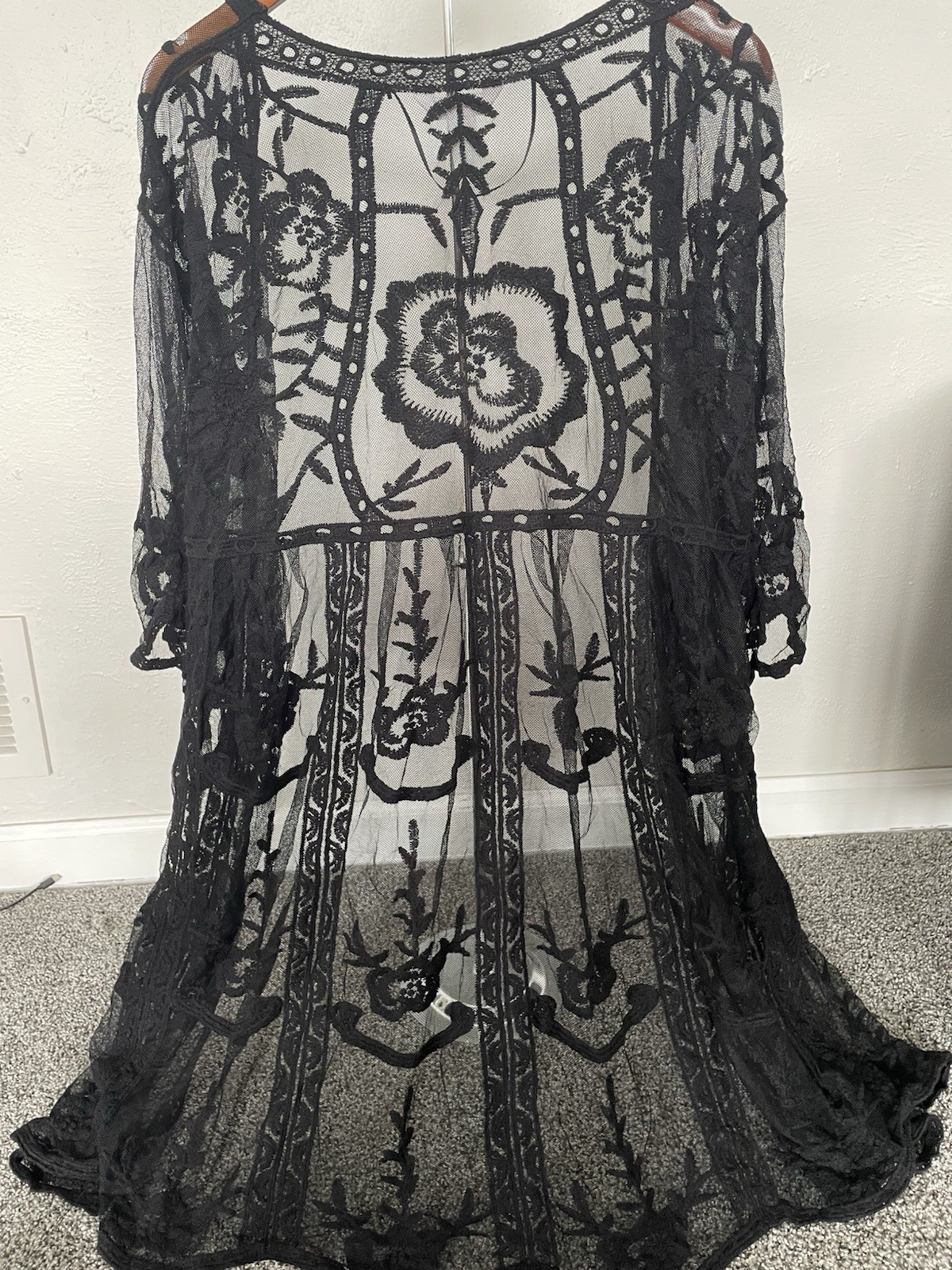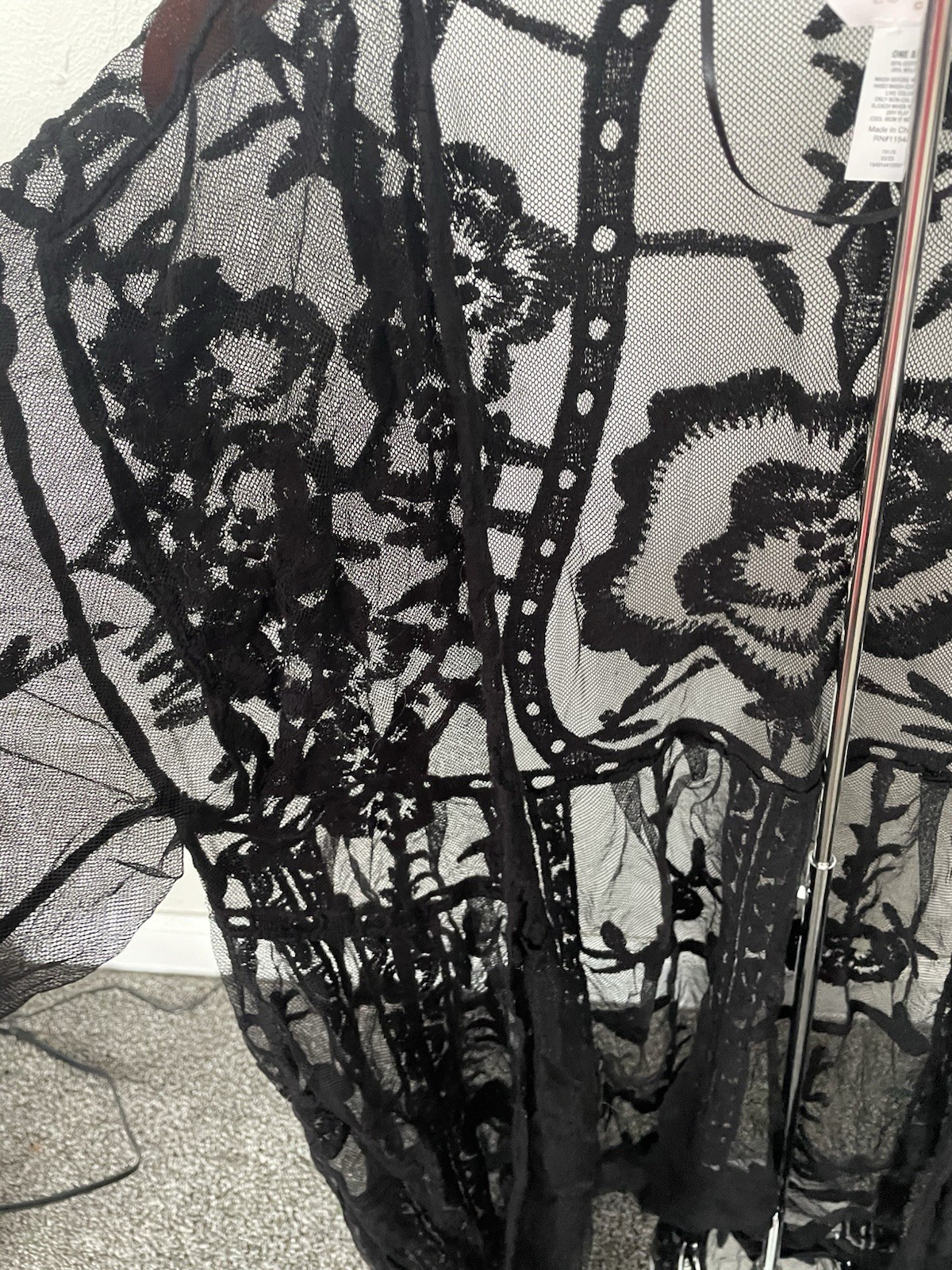 как выглядит LC Lauren Conrad Lace Kimono Duster Tagged One Size Black Floral Sheer Boho фото