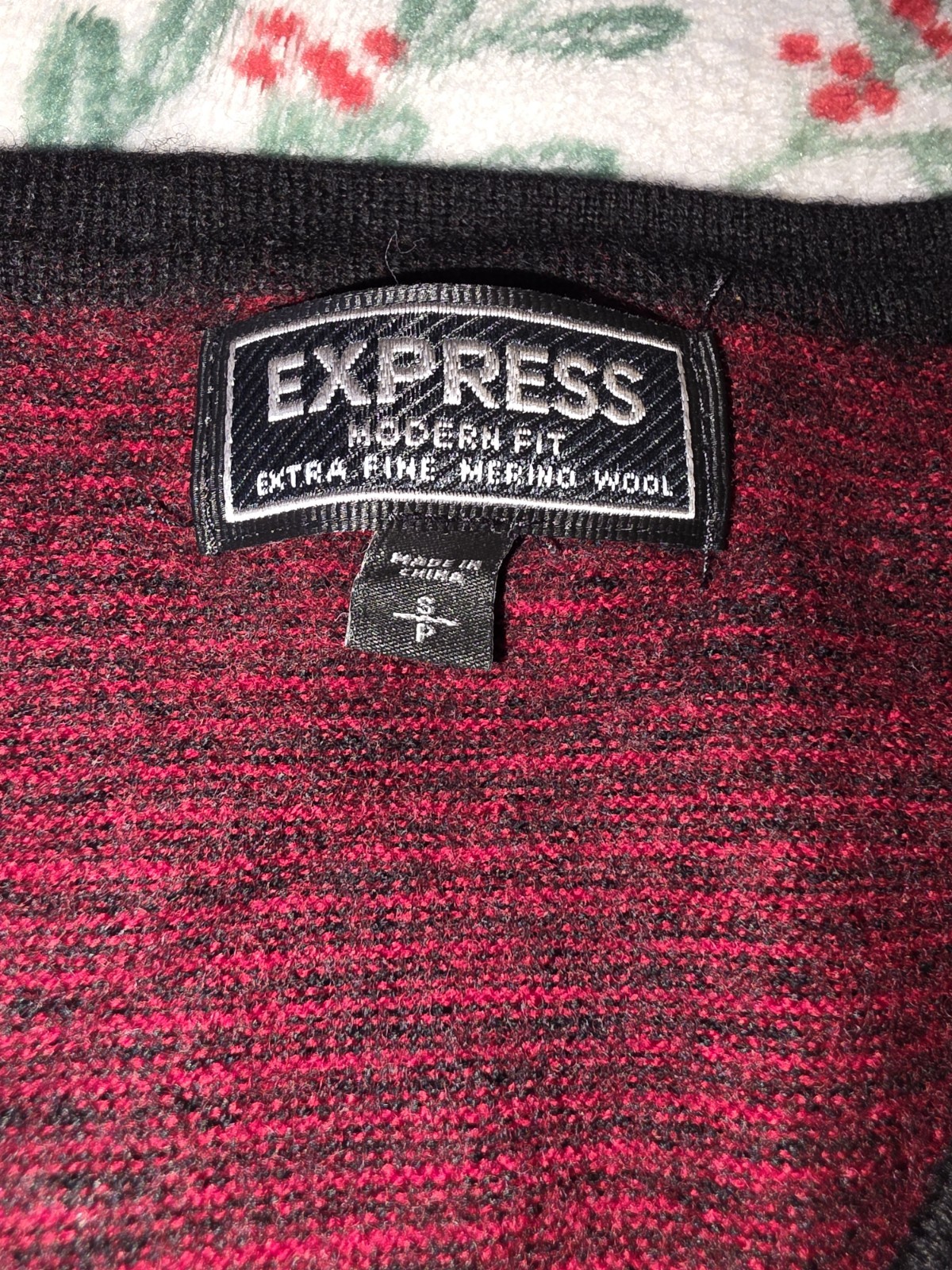 как выглядит Express Womans Modern Fit Extra Fine Merino Wool Red And Black Sweater Small фото