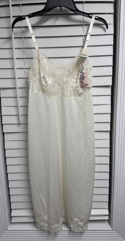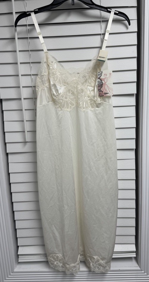 как выглядит VTG SHADOWLINE Lace Trim Nightgown Slip Dress 36. 26 Ivory Made In USA фото