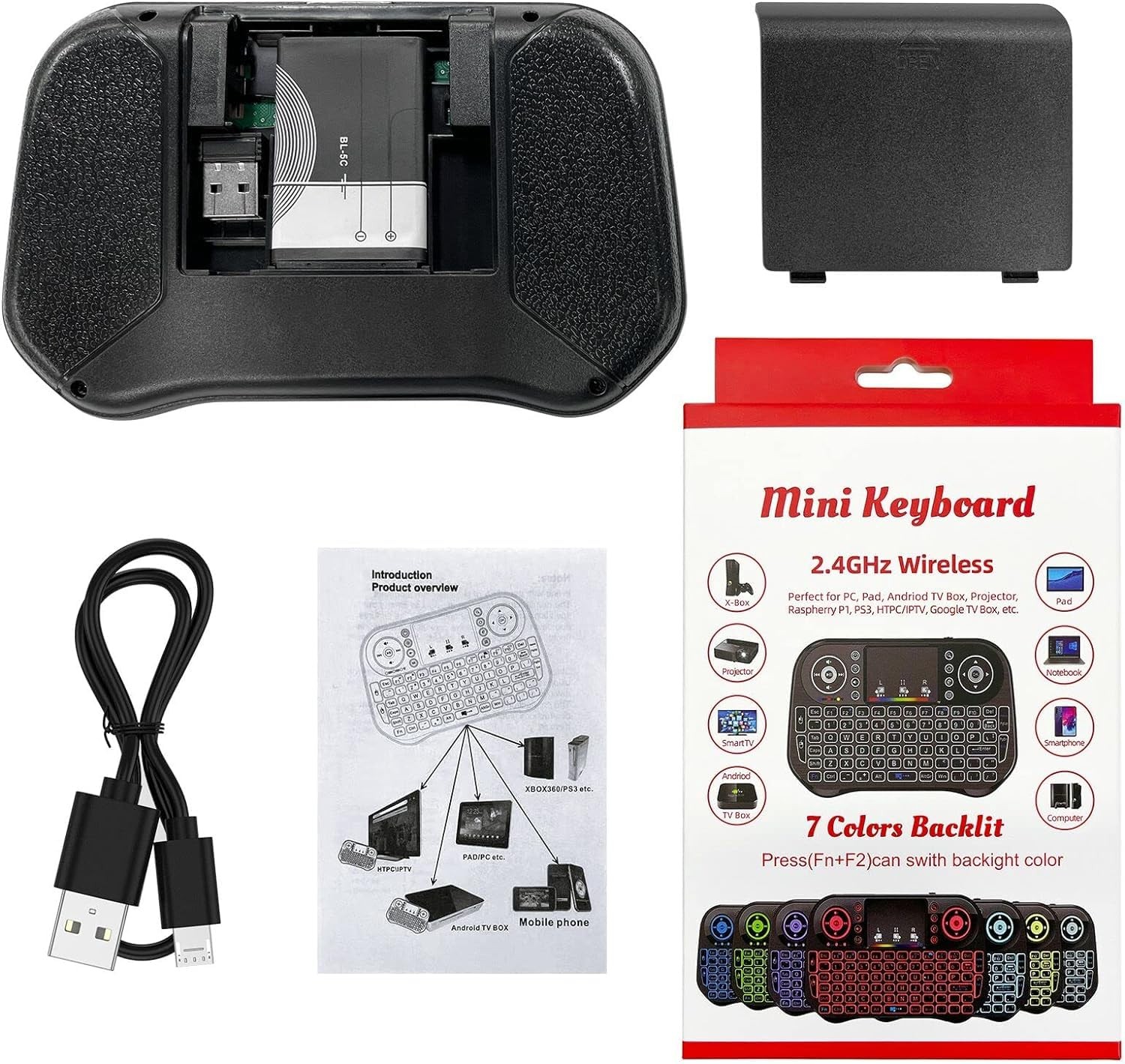 Mini Wireless Keyboard with Touchpad Mouse Combo, 7 Colors RGB Backlit, Porta...