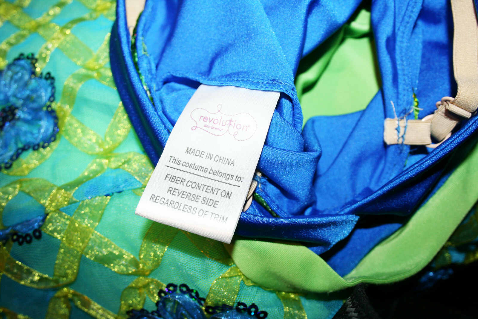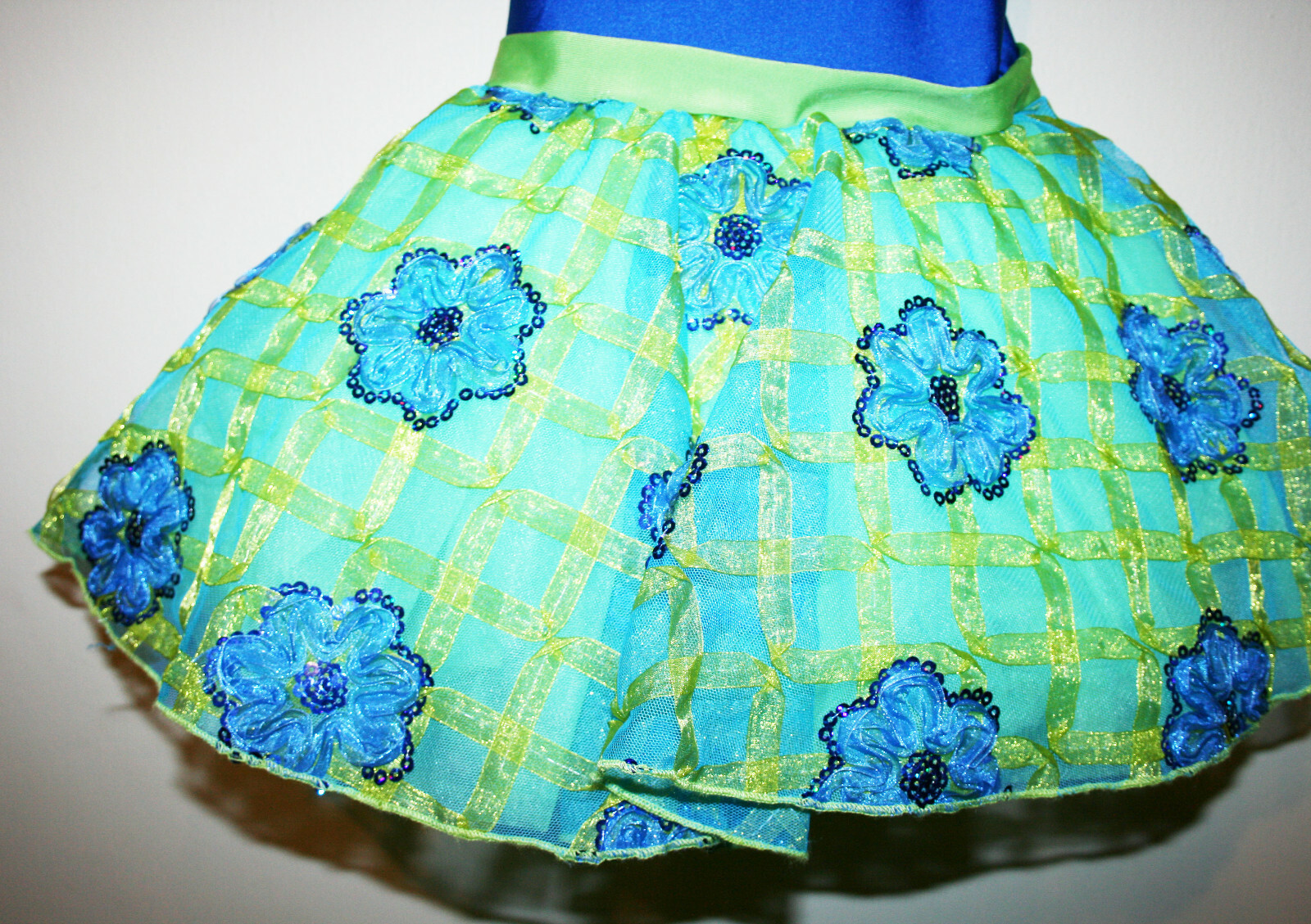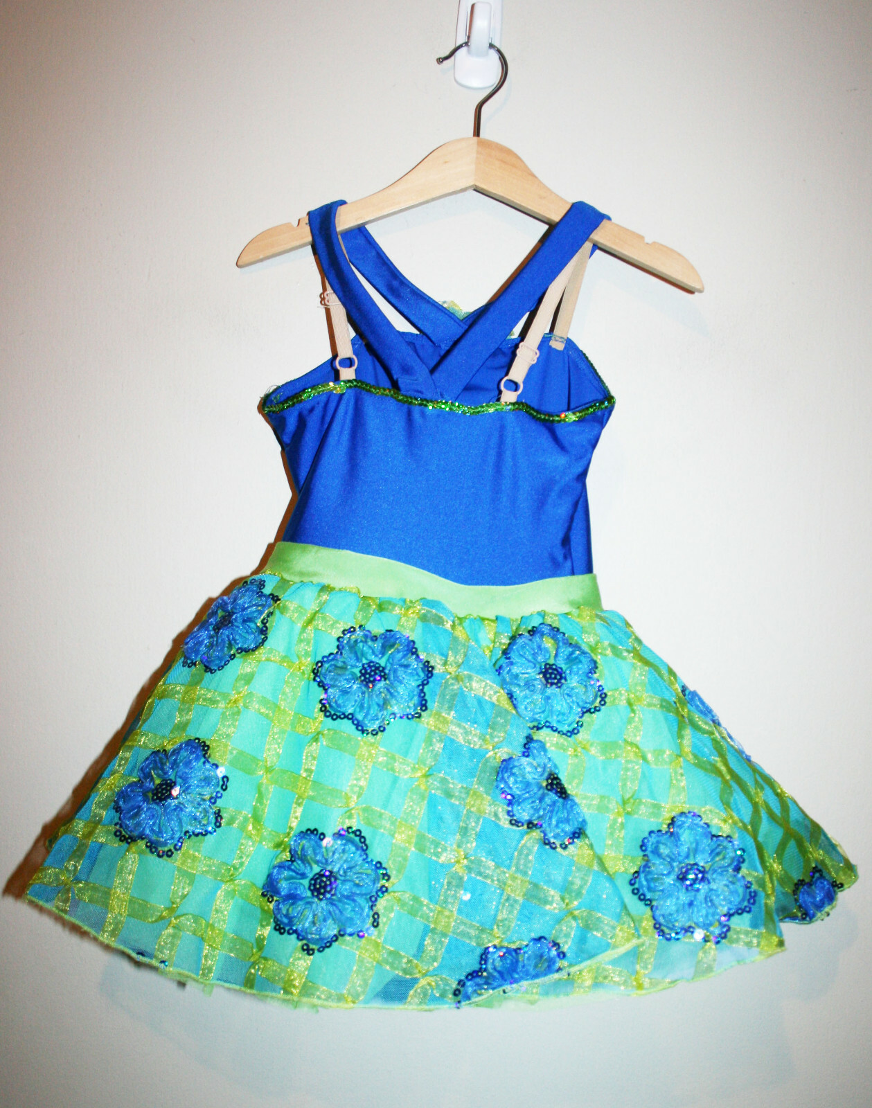 Girls REVOLUTION DANCEWEAR Green Royal Blue Floral Dance Costume Dress Small SC