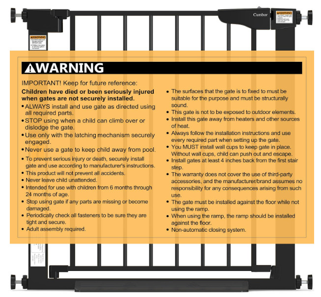 Cumbor 30-46 Auto Close Baby Gate Black 31 H Pressure Mount Stair