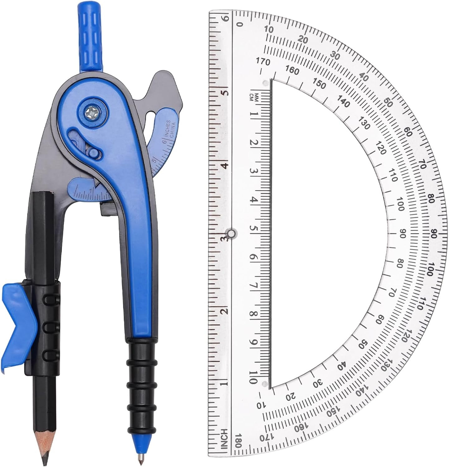 • Compass and Protractor Set, Student Geometry Math Set, Drawing Compass and 6 Inc