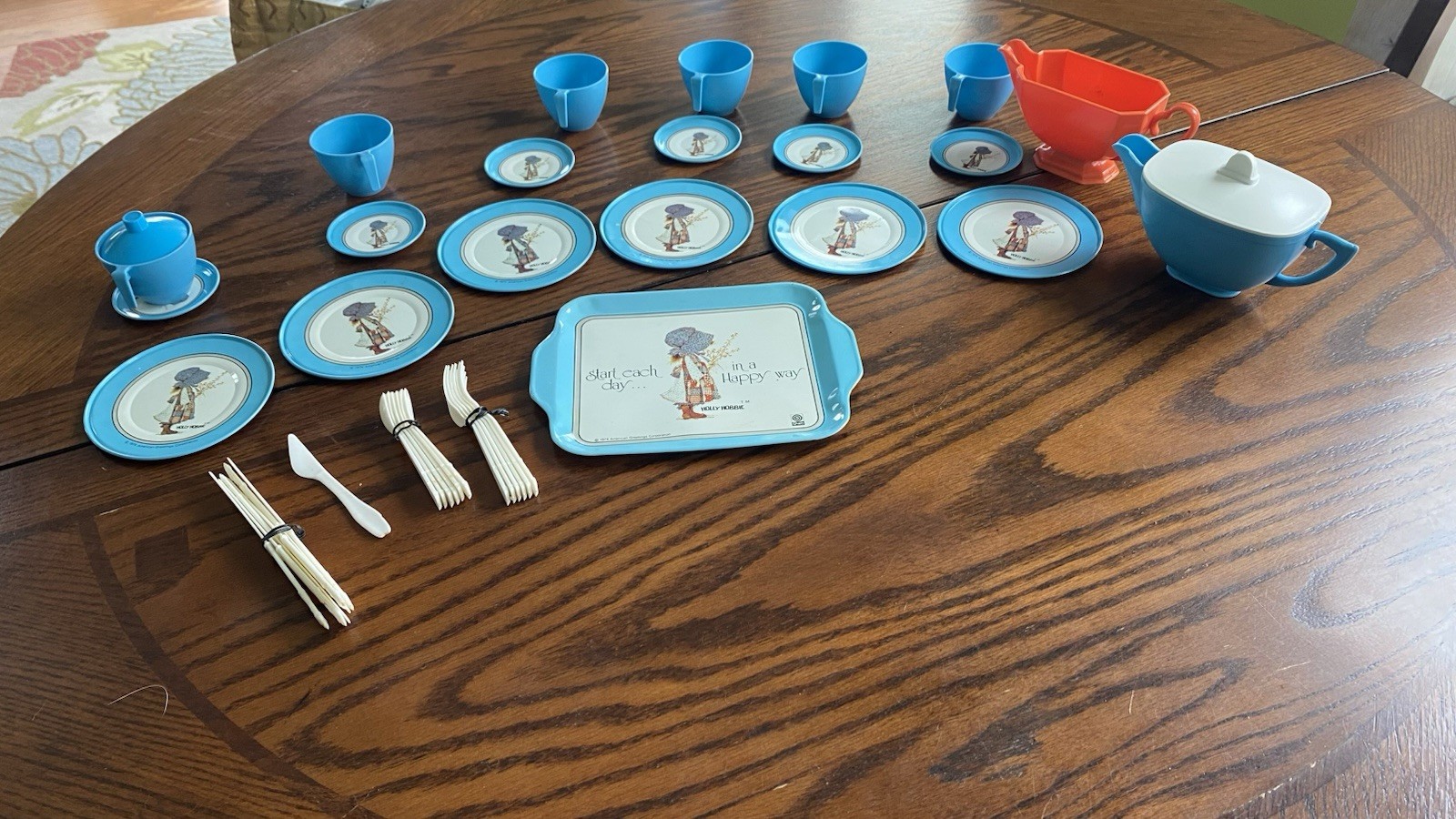 как выглядит Holly Hobbie Kids 1974 Complete 40 pc tea Settings American Greetings фото