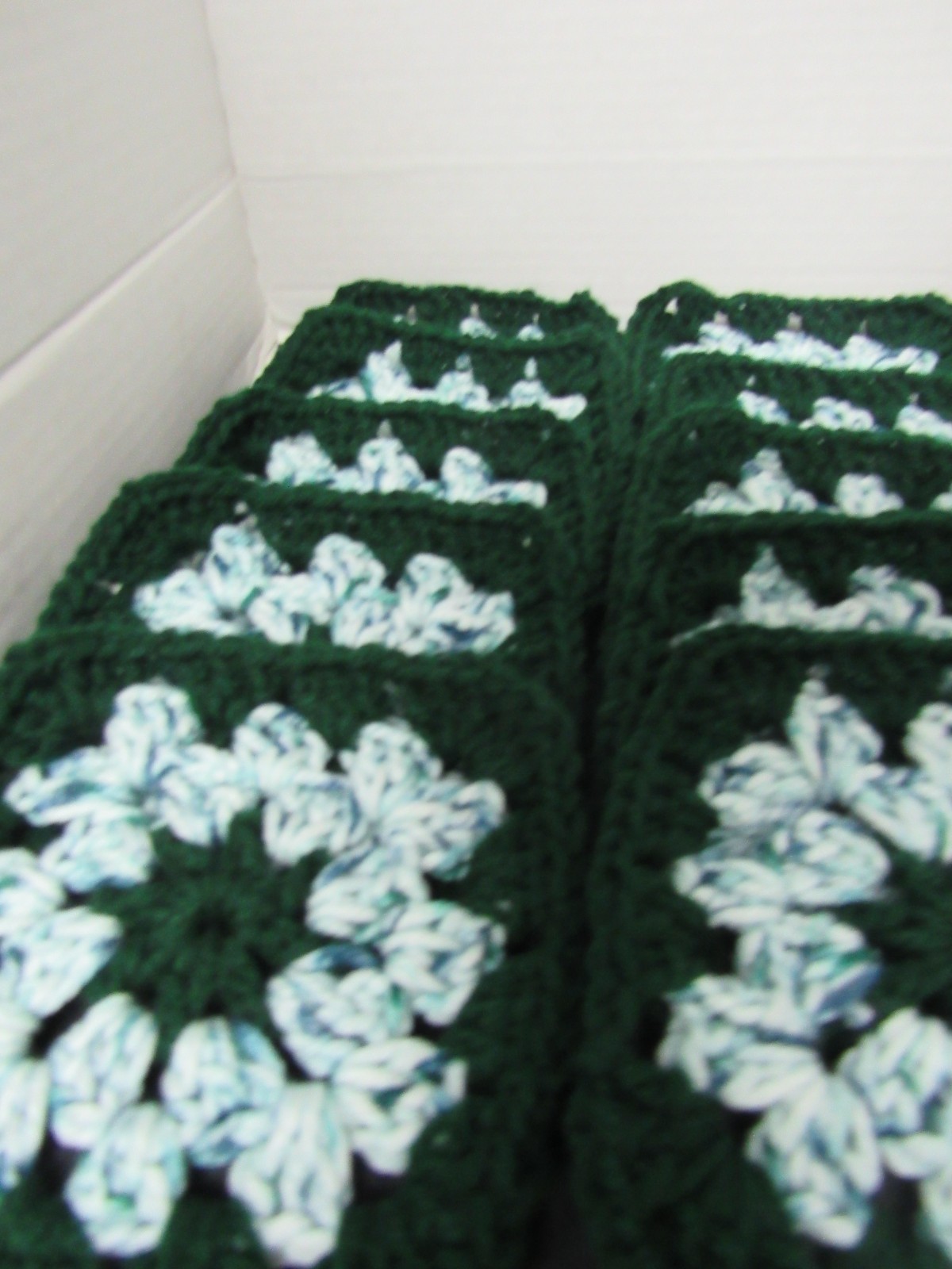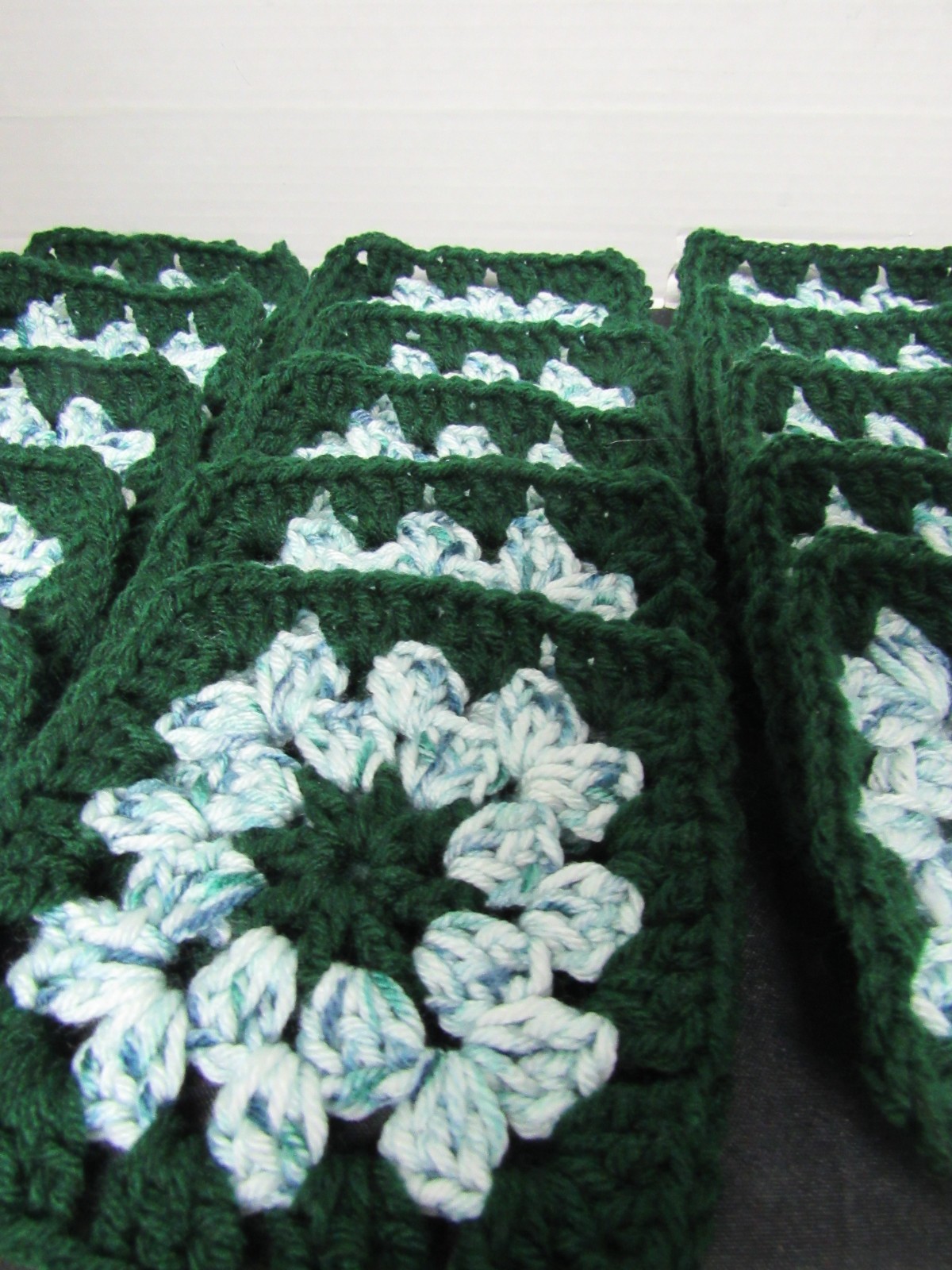 Lot of 20 5 Crochet Granny Squares Blocks, Floral, Dk Green Variegated Green