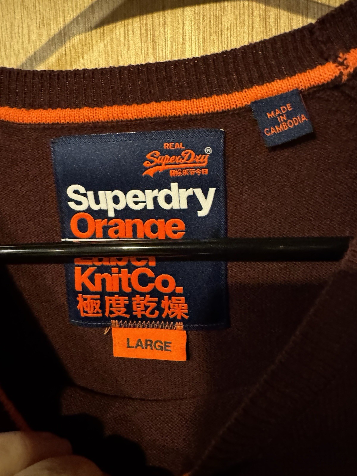 как выглядит SuperDry Orange Label Mens Large Red Knit Crew Neck Cotton Sweater Pullover фото
