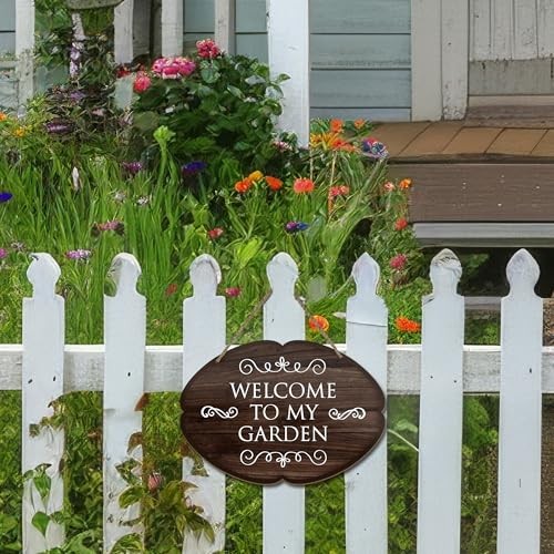 Rustic Garden Hanging Sign, Welcome To My Garden Wooden Decor, Yard Brown