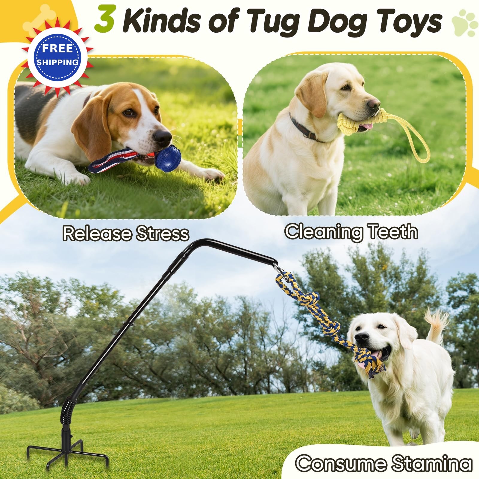 Tether Outdoor Dog Rope Toy with Strengthen Spring Pole 3 Kinds Tug of War Toys