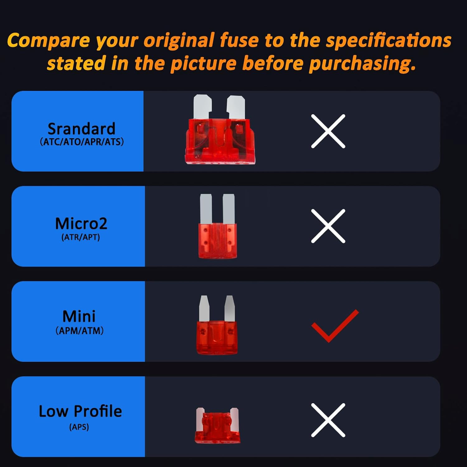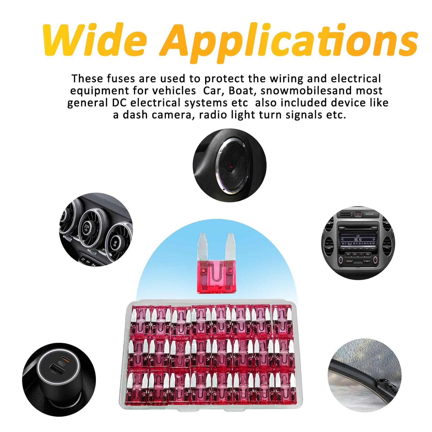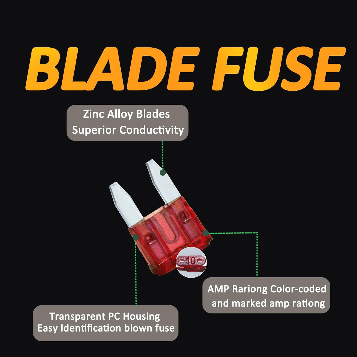 50Pcs 10A Mini Blade Fuses, 10A Minifuse, ATM APM Blade Fuse, Fusibles Automotiv