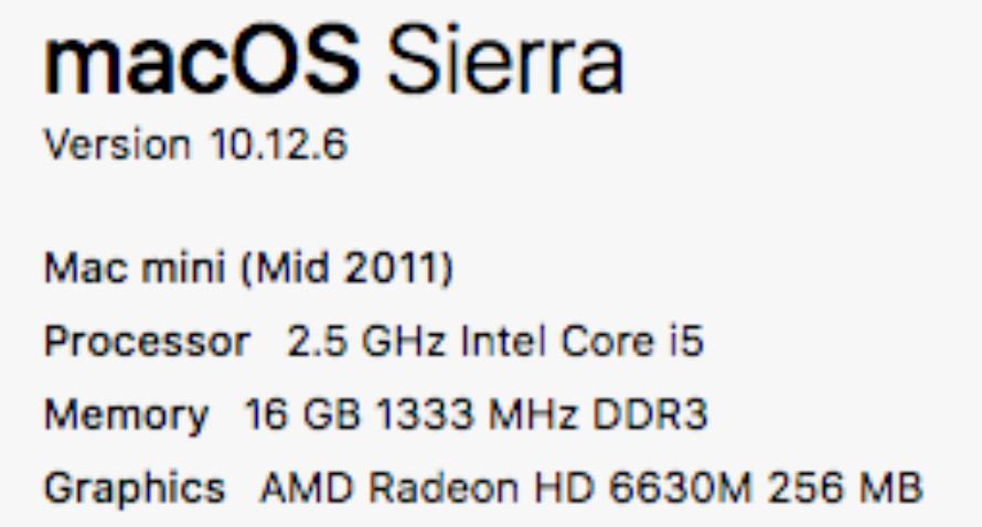 Операционная система: macOS 10.12, Sierra