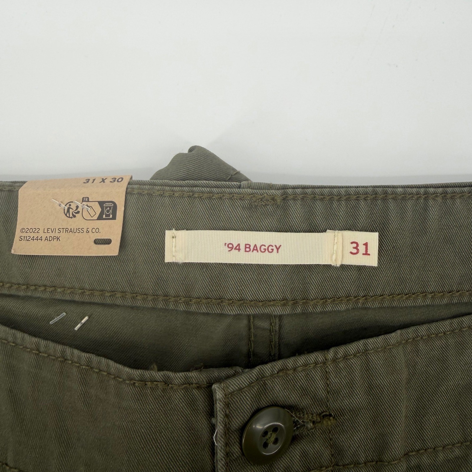 как выглядит Levis 94 Baggy Cargo Pants Olive Green Mens Size 31x30 Cotton Drawstring hem фото