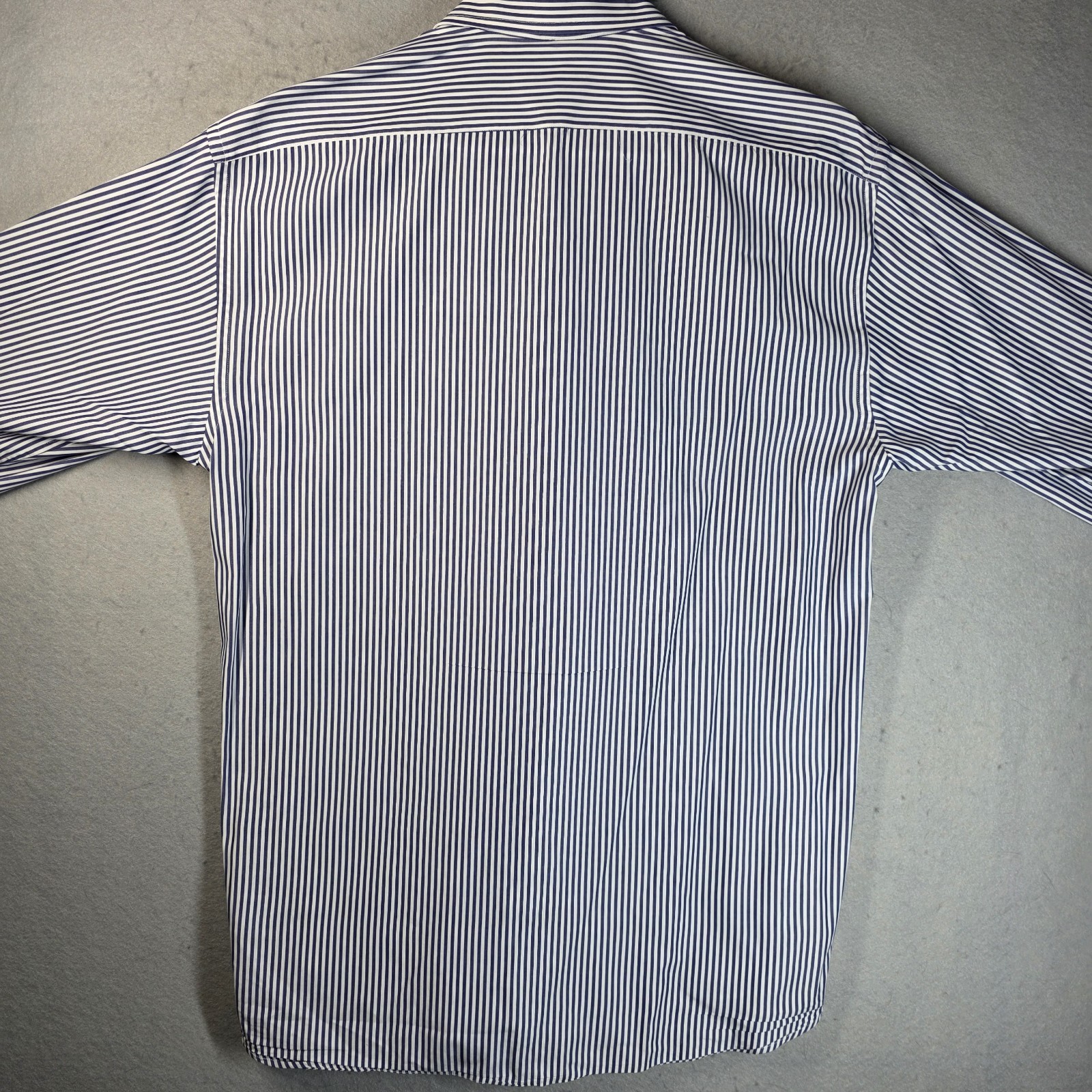 как выглядит Mariano Rubinacci Italian Luxury Handmade Blue Striped Button Down Dress Shirt фото