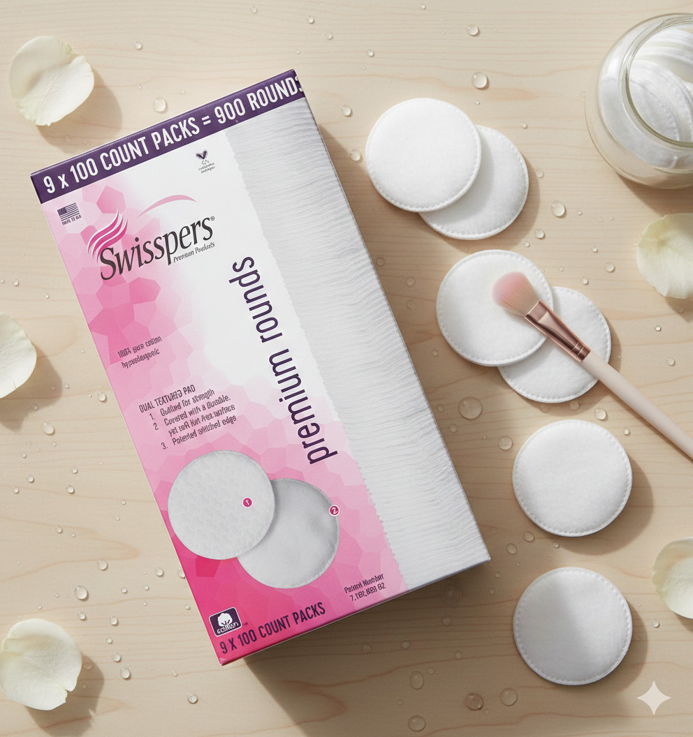 Swisspers Premium Hypoallergenic Cotton Rounds 900-Count for Gentle Skincare Use