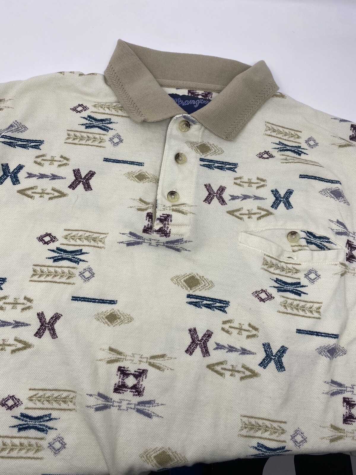Vintage Wrangler Men's Medium Colorblock Aztec Polo Shirt Cowboy Southwest