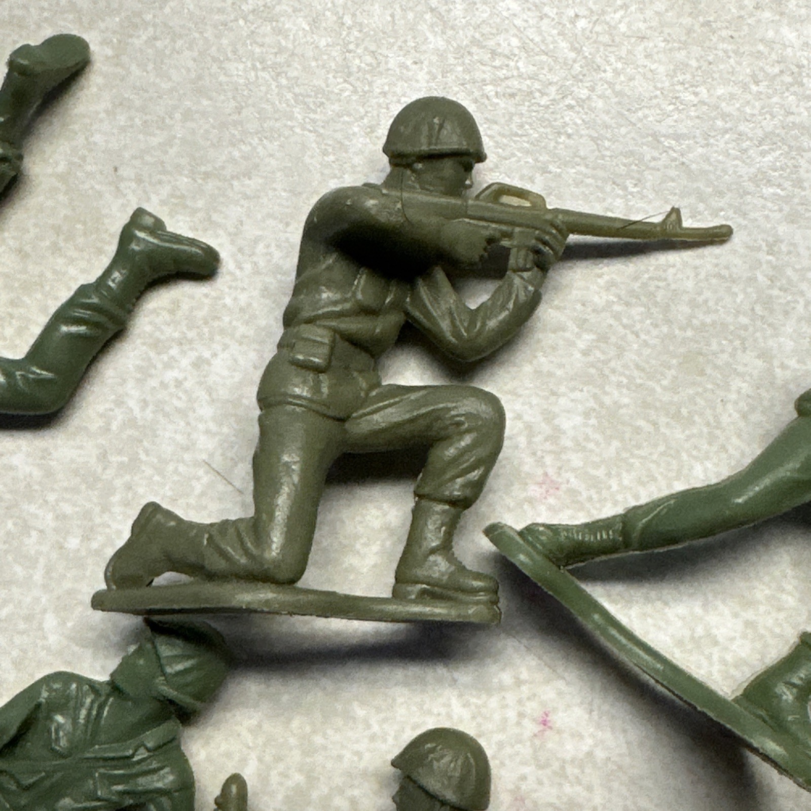 VINTAGE TIM-MEE TOY PLASTIC GREEN ARMY SOLDIER LOT OF 8 - 3 Made In USA see pic