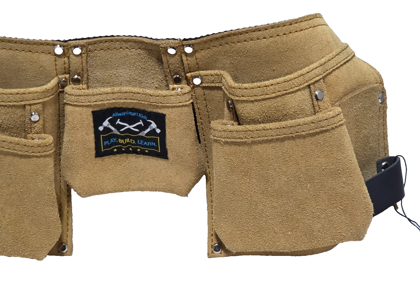 Always Smart Kids REAL LEATHER adjustable buckle KIDS TOOL BELT w/multi pockets