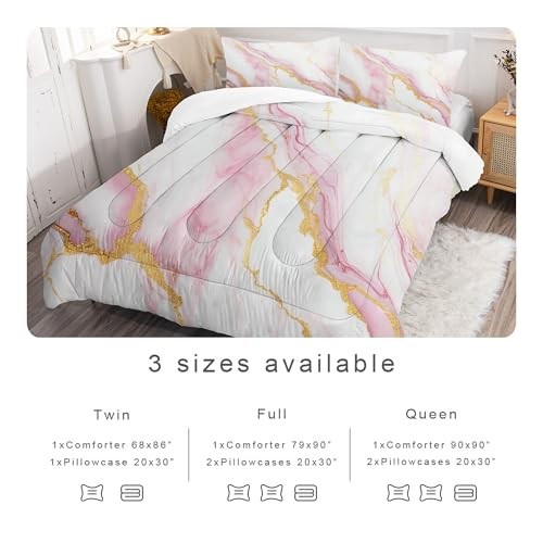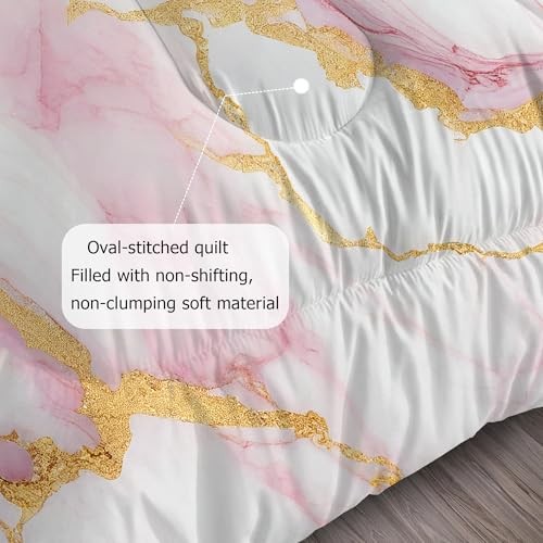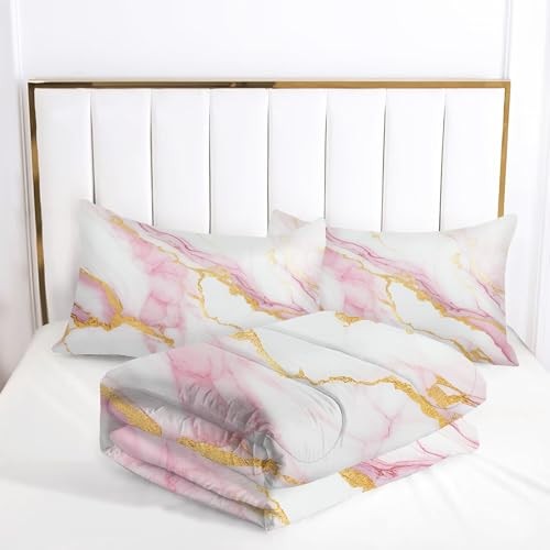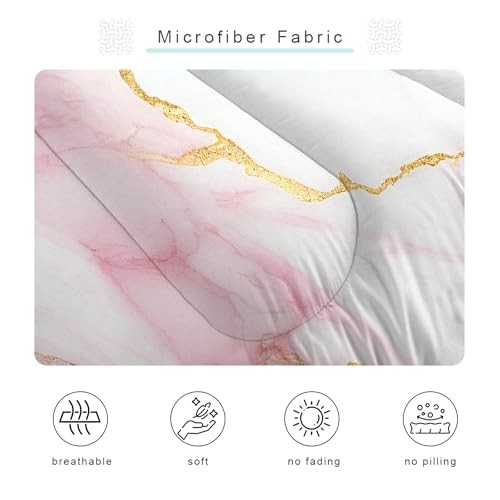 Girls Comforter Set: Bedding Sets for Teen Girls Tween Kids Twin Pink Marble