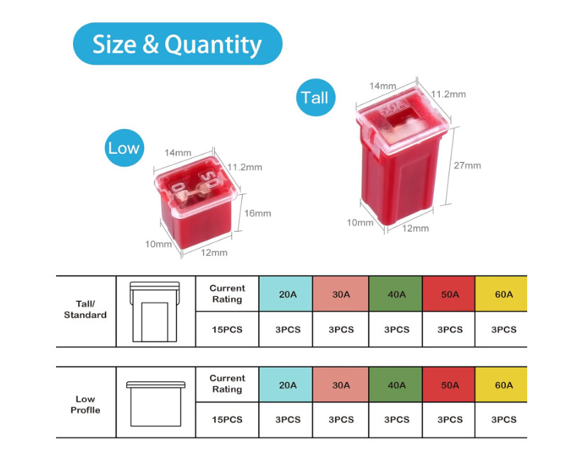 30pcs Jcase Car Fuse Assortment Kit, Tall/STD and Low Profile Jcase Box Shaped F