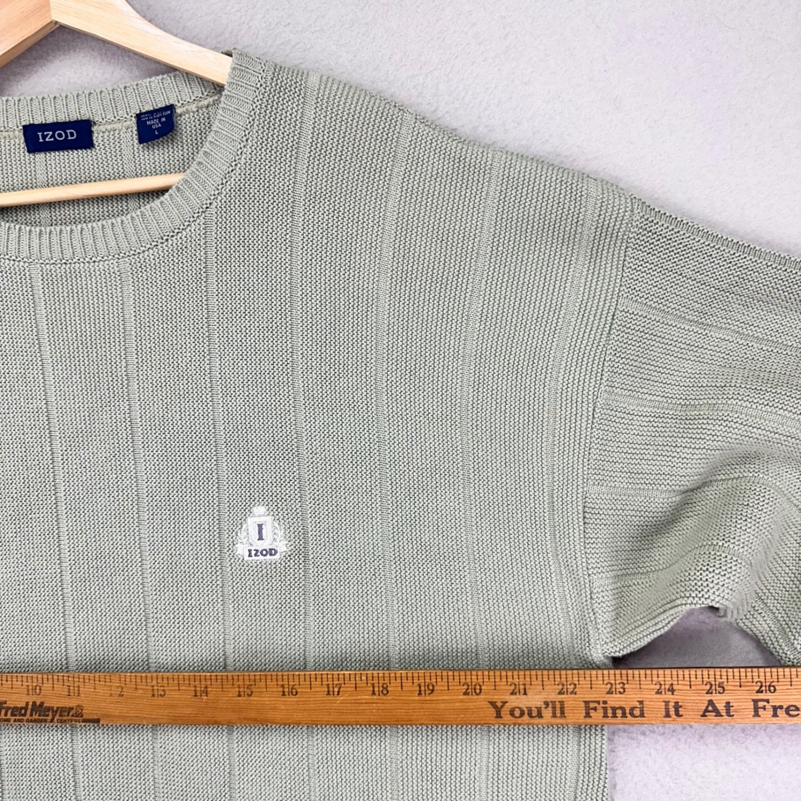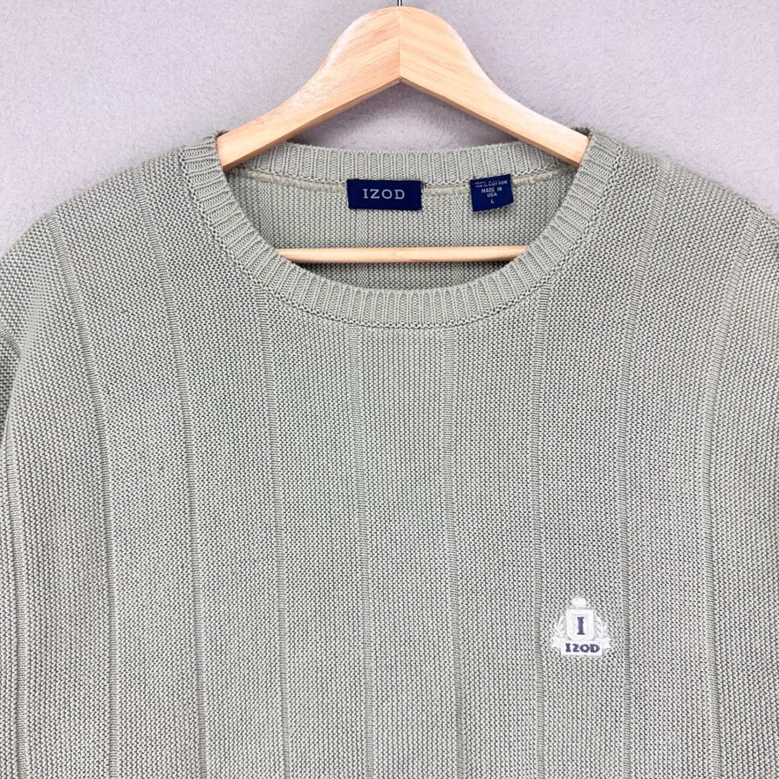 как выглядит Vintage IZOD Sweater Mens Large Pale Green Cotton Knit Crewneck Preppy 90s USA фото