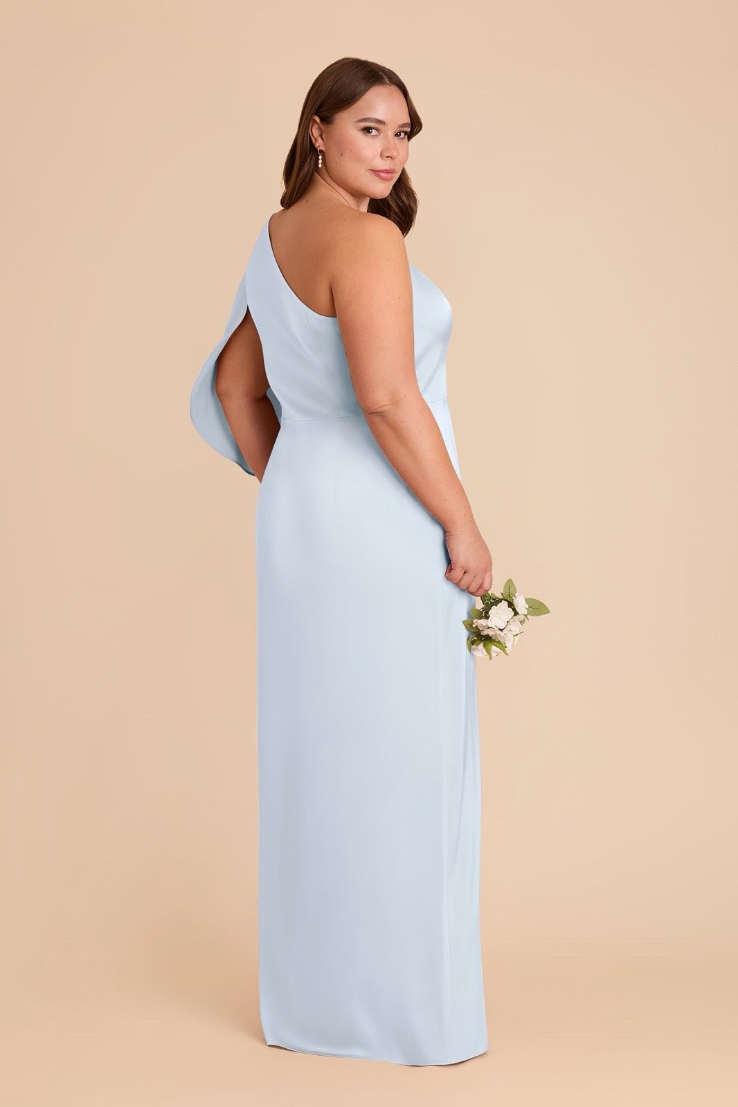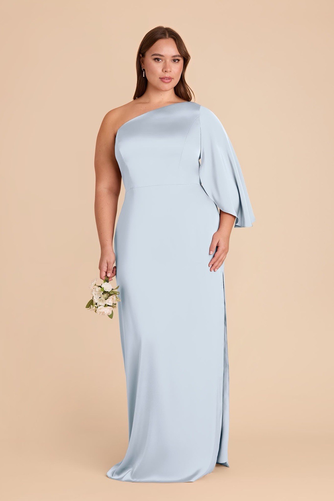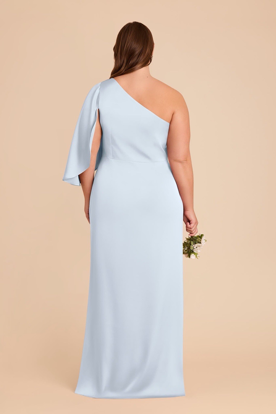 Birdy Grey Christine One-Shoulder Dress Matte Satin Mist Blue Size 0X 16 NWT