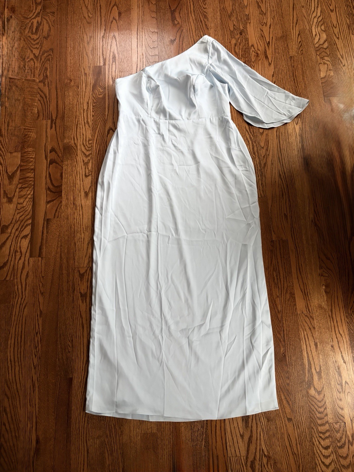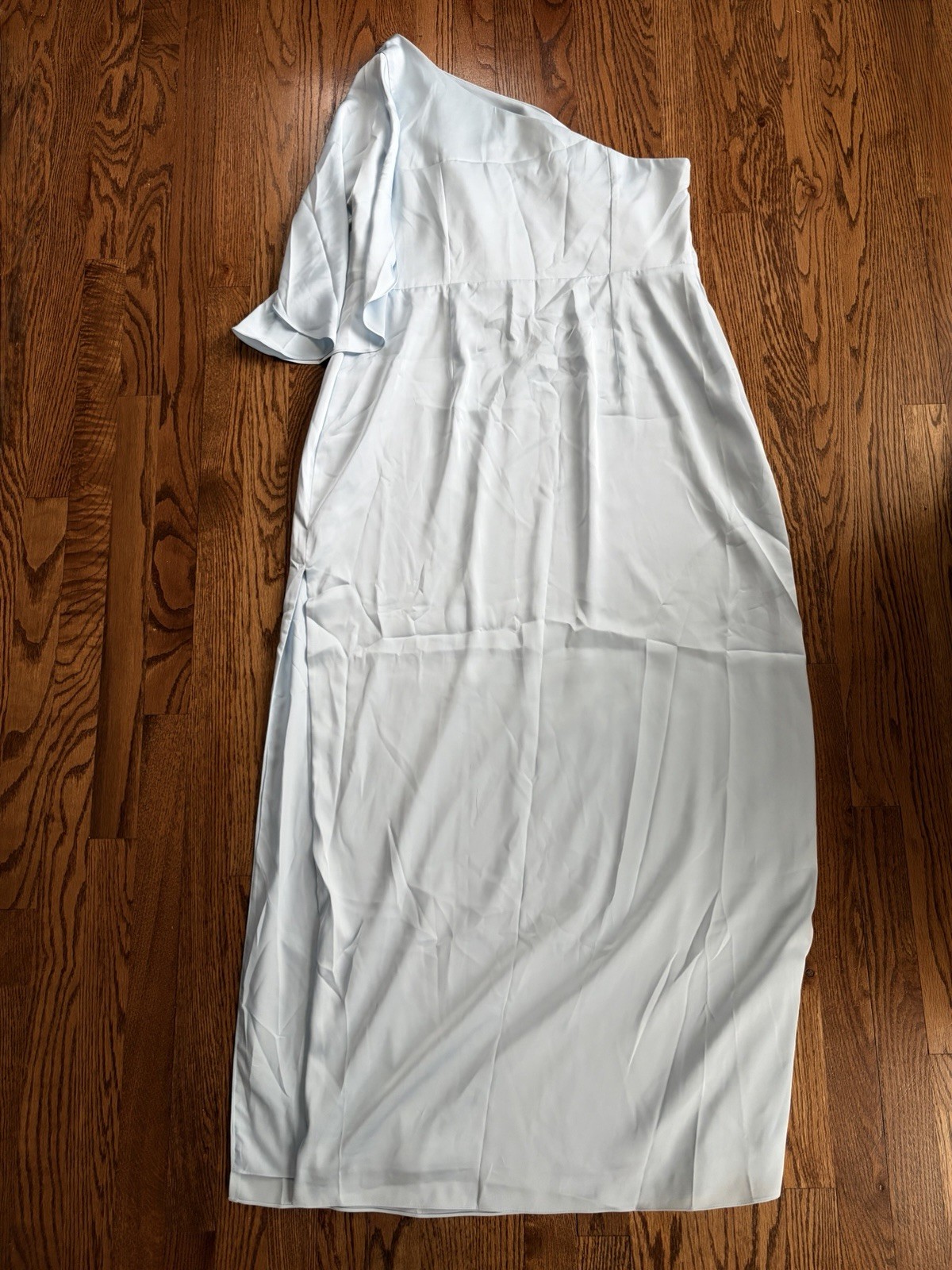 как выглядит Birdy Grey Christine One-Shoulder Dress Matte Satin Mist Blue Size 0X 16 NWT фото