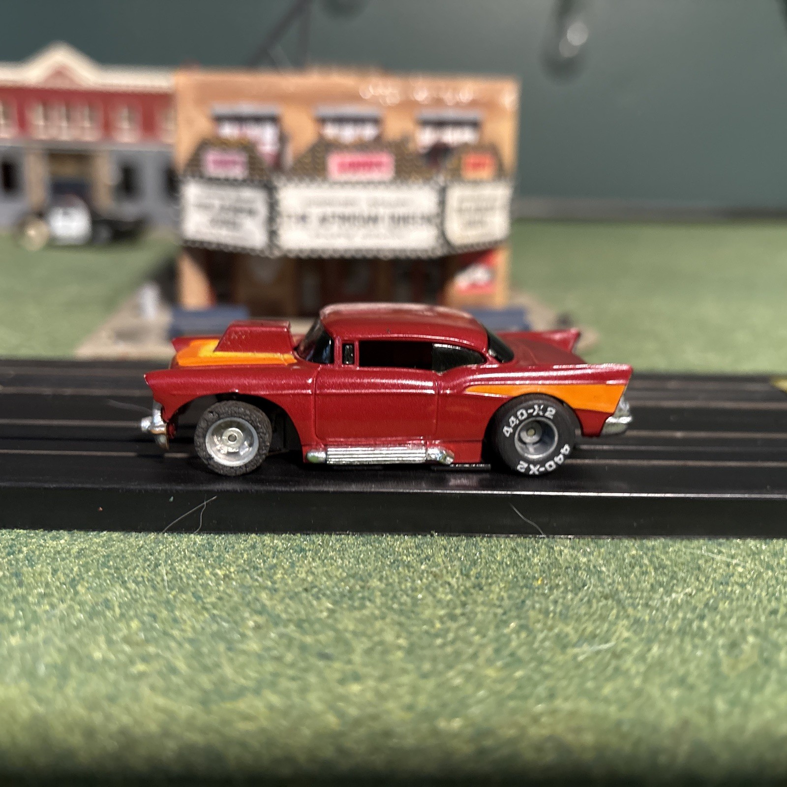 Tyco 440x2 Chevy Bel-Air, Nomad, Dark, Red Yellow Orange, Running Chassis