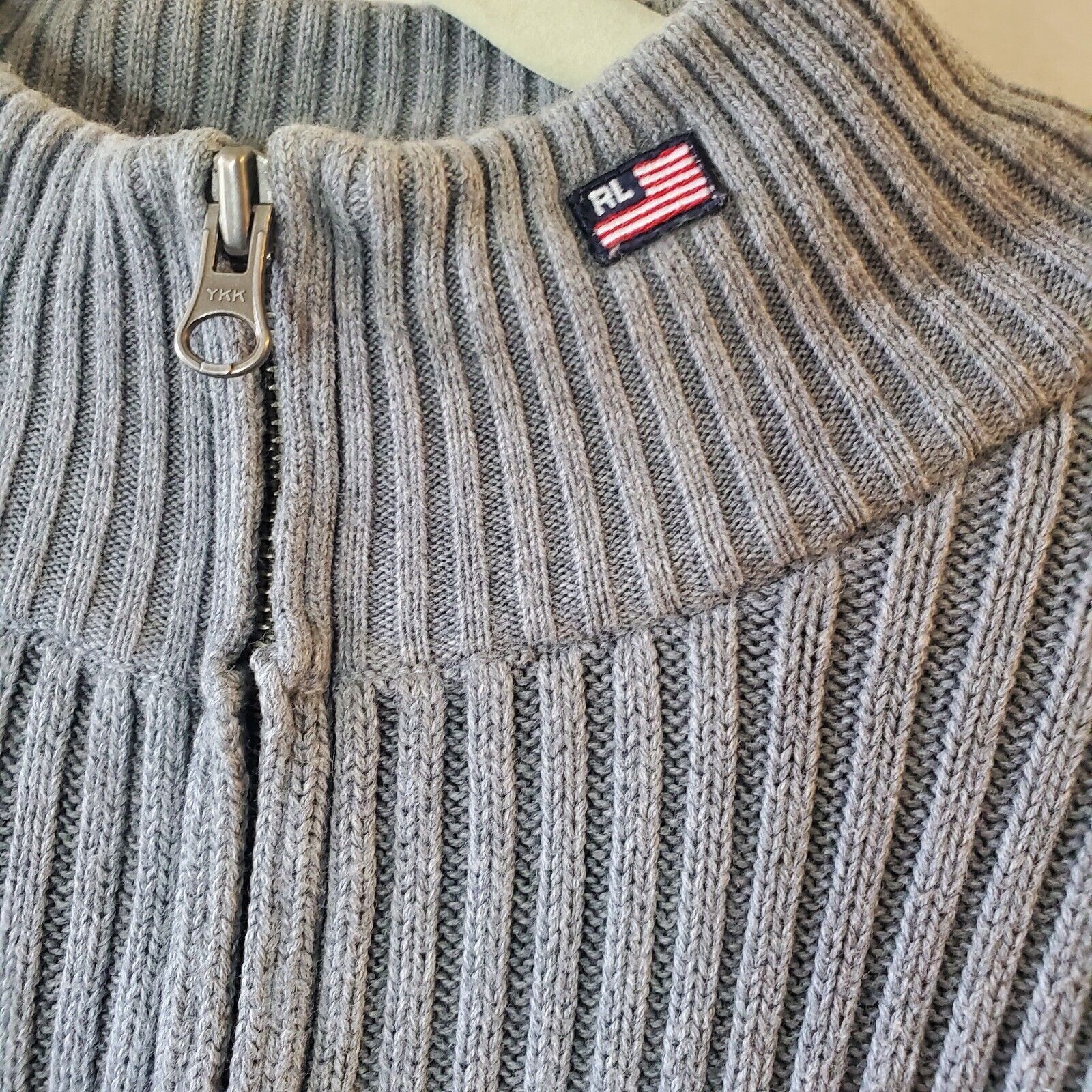 Polo Ralph Lauren Mens Size XL Half Zip Sweater American Flag Cotton Ribbed