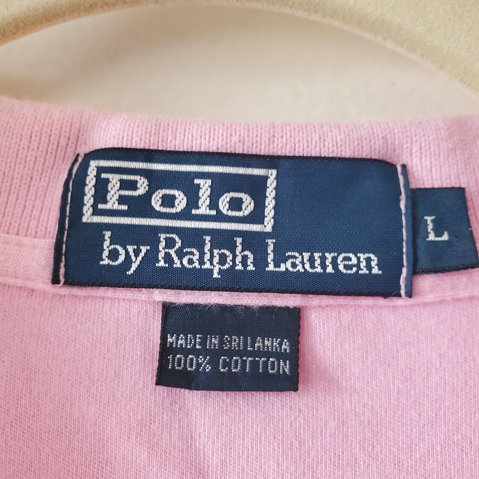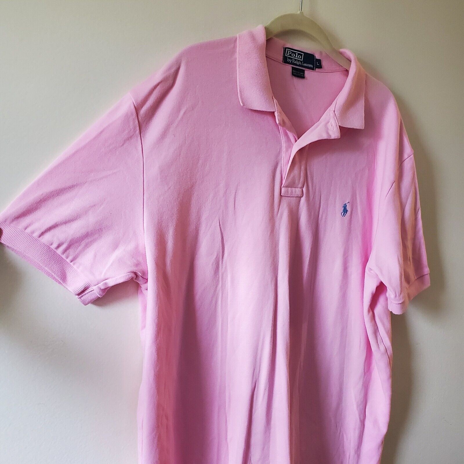 как выглядит POLO BY RALPH LAUREN SIZE L PINK 2 BUTTON SHORT SLEEVE COTTON SHIRT W BLUE LOGO фото