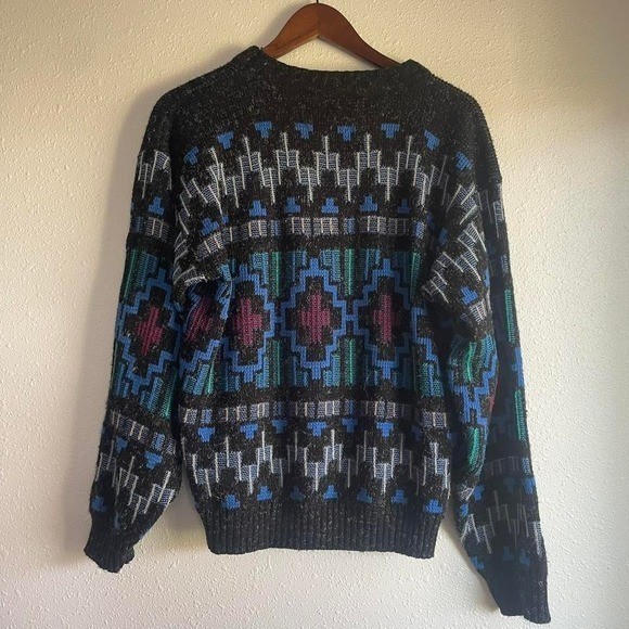 Vintage 1980s Retro Geometric Grandpa Sweater