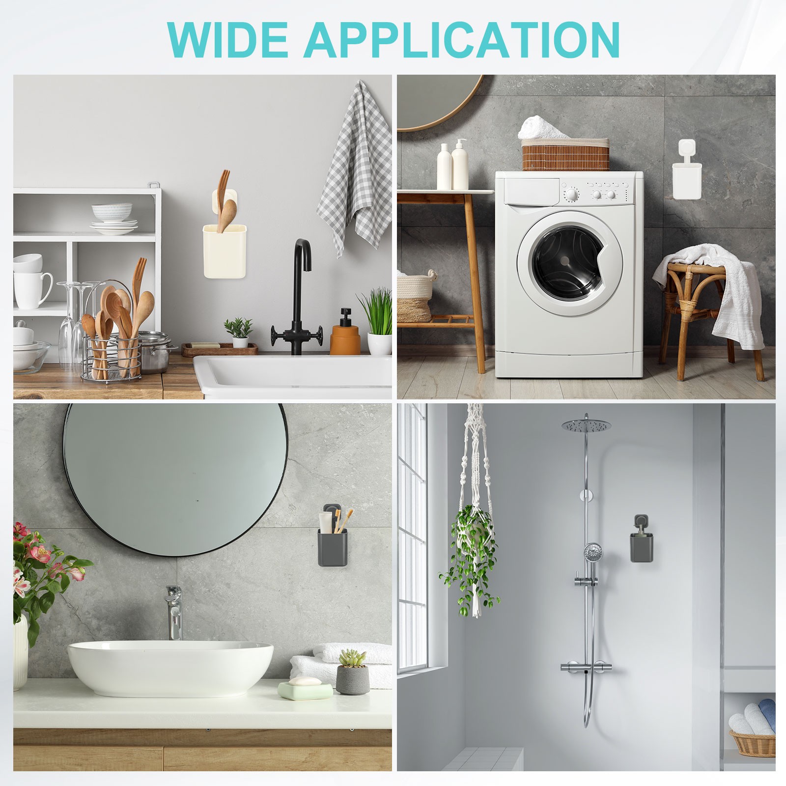 2Pcs 4 x 8 Wall Mounted Suction Toothbrush Holders for Bathroom, Gunmetal Grey