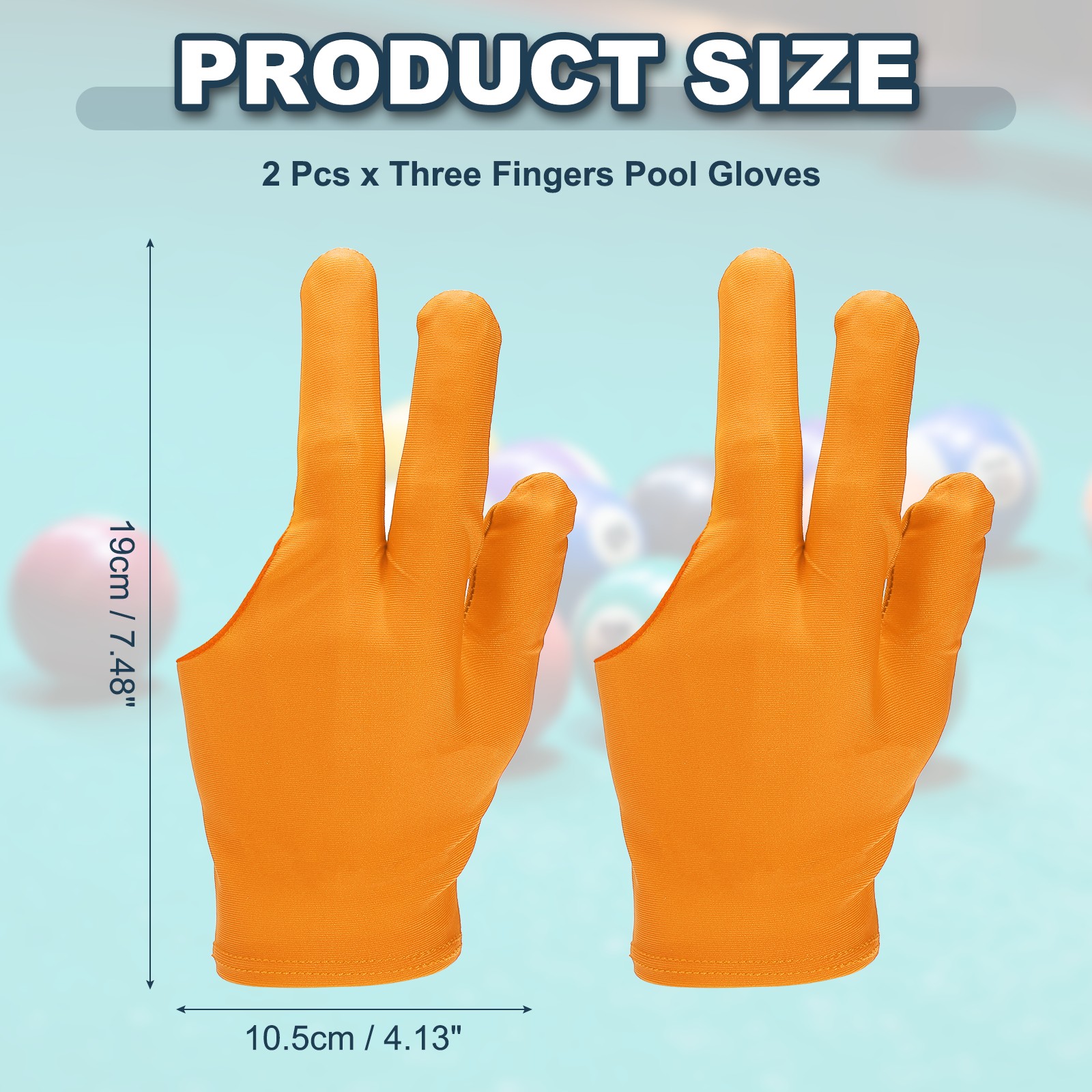 2 Pcs Three Fingers Pool Gloves, Billiards Left Hand Cue Sport Gloves, Orange