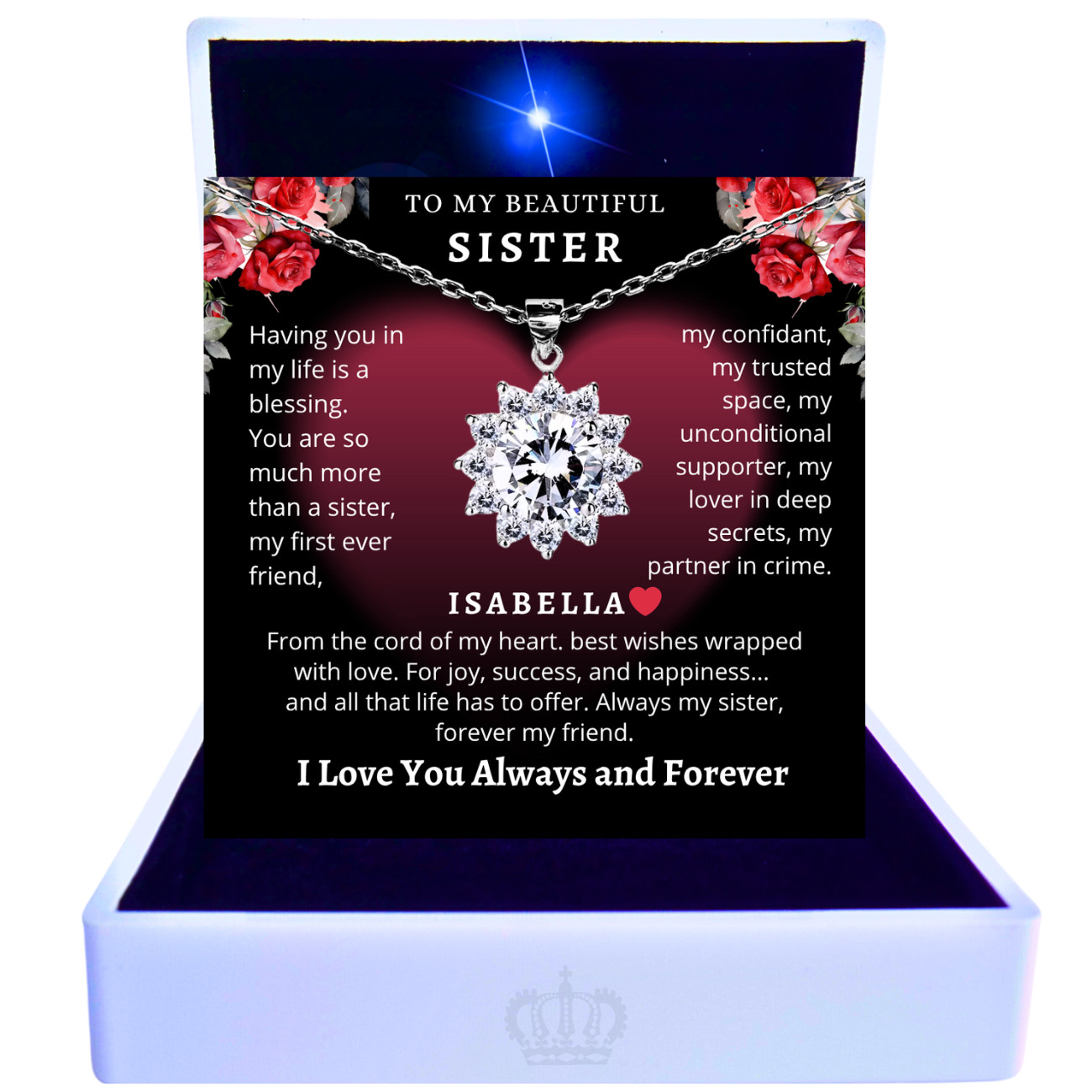 Особенности: Adjustable, Engraved, Nickel-Free, Personalized, Cristal necklace for women, Necklace for women, Pendant for women, Forever love necklace, Gift for sister, Necklace for sister, Pendant for sister, sister gift ideas, sister birthday gift, To my sister, christmas gift for women, friendship, birthsstone, Forever love, I love you always and forever