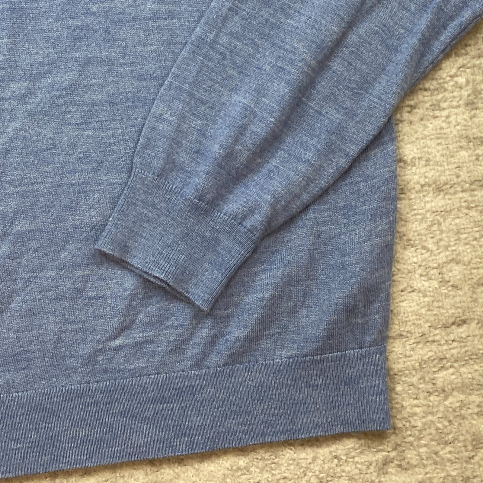 как выглядит J Crew Merino Wool Collared Sweater Large Blue Preppy Outdoors Academia Mens 90s фото