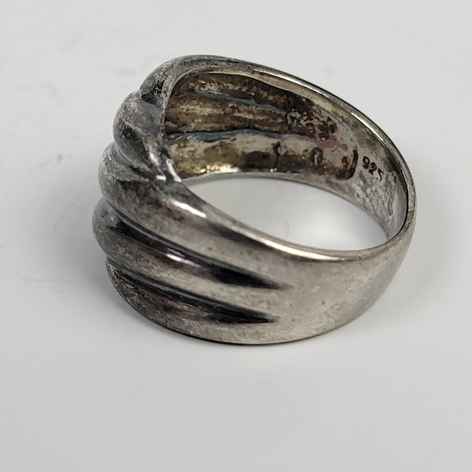 Vtg 925 Sterling Silver Ring Ribbed Wave Bold MCM Modernist Size 6.75