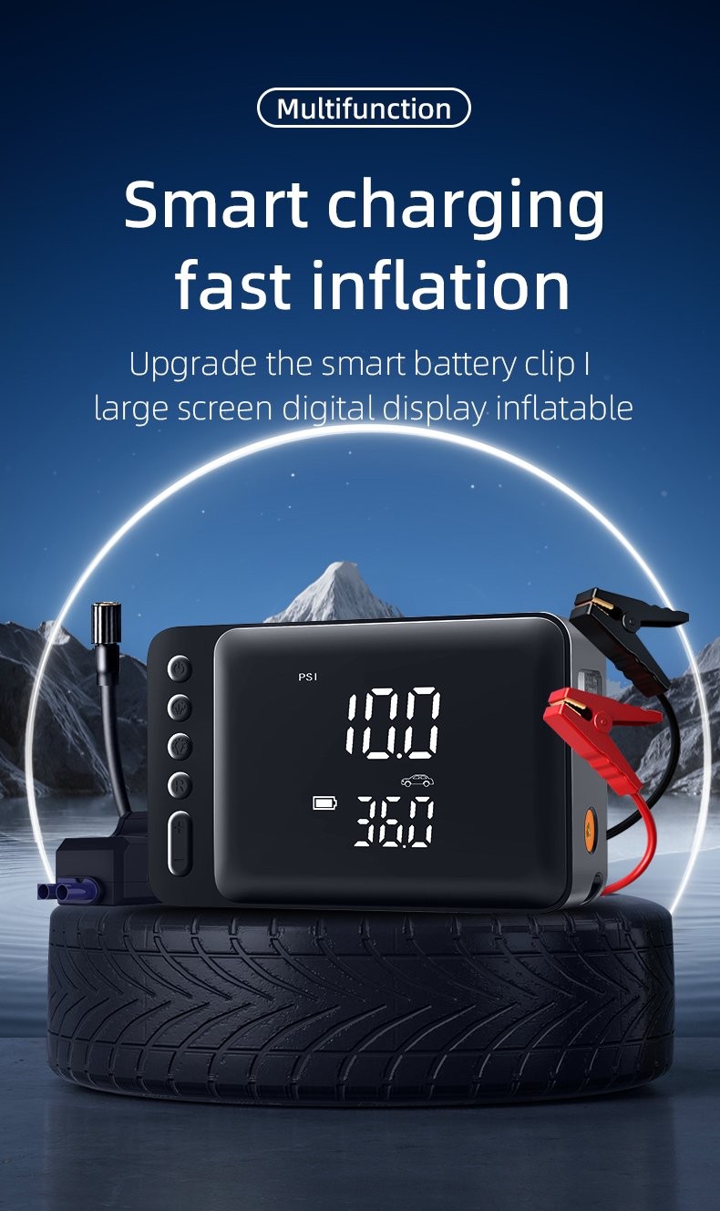 • Car Jump Starter with Air compressor Booster Jumper Power Bank Car Battery 6000A