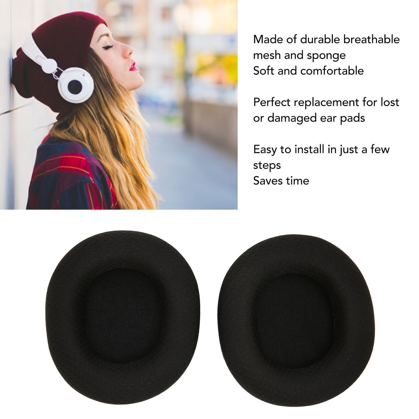 Headphone Ear Pads Noise Isolation Breathable Mesh Sponge Replacement EarCushion