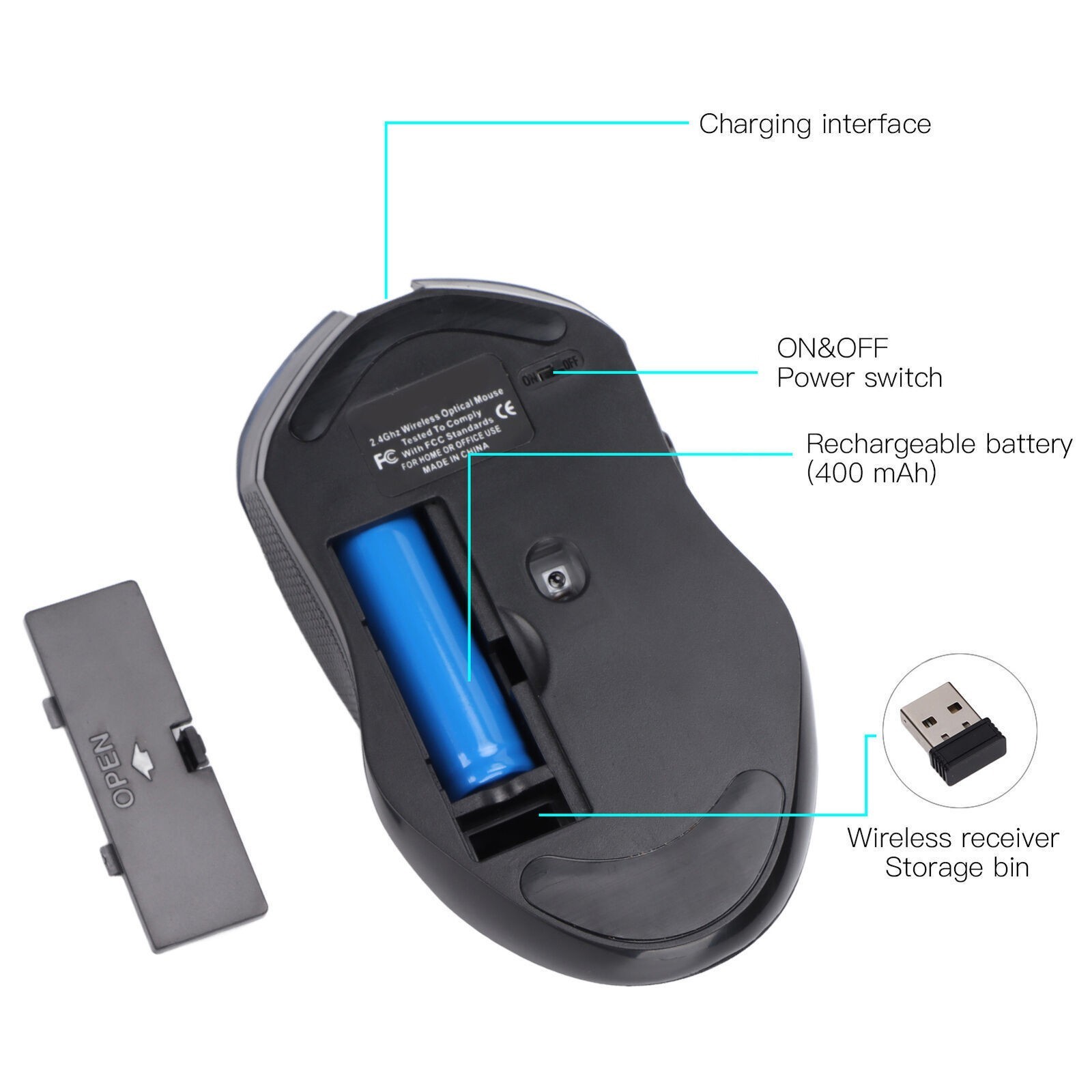 Wireless Mouse Rechargeable Mute USB Mice Ergonomic 2.4GHz Connection Computer