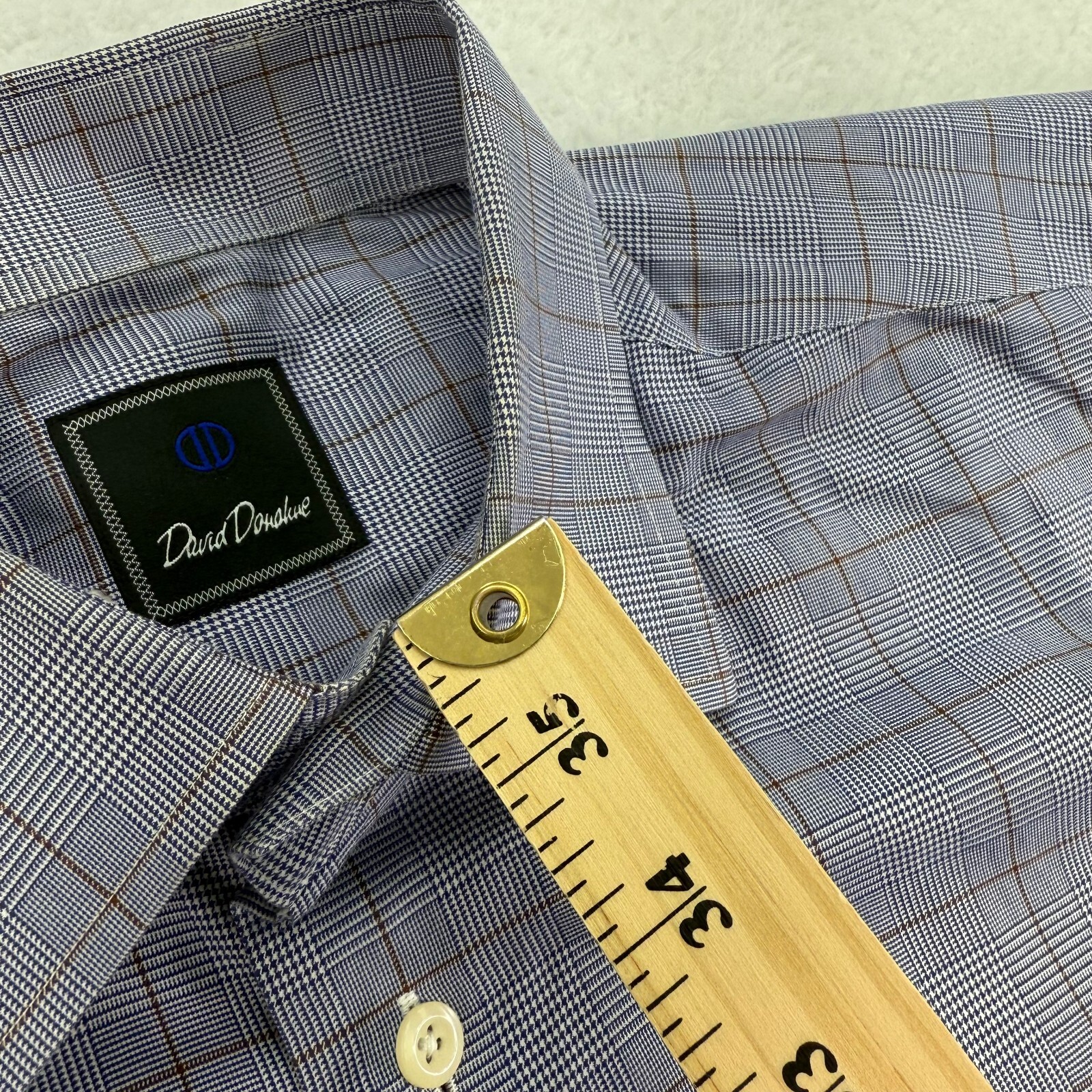 как выглядит David Donahue Shirt Mens 17 34/35 Blue Plaid Button Up Long Sleeve фото