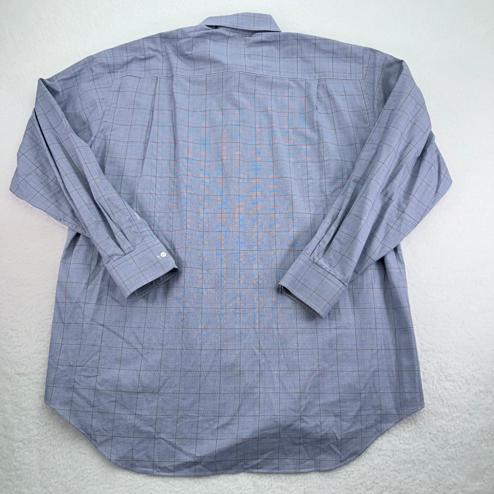 David Donahue Shirt Mens 17 34/35 Blue Plaid Button Up Long Sleeve