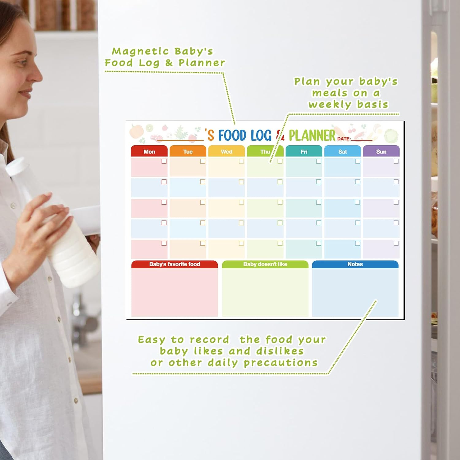 2 Pack Baby First Foods Checklist, 14X10Baby Food Chart with 2 Dry Erase Marker