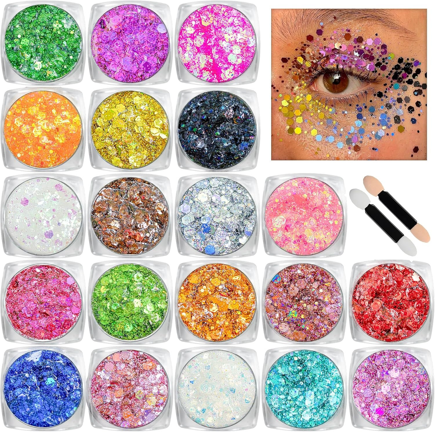 Body Glitter Face Glitter Makeup Festival Glitter, 20 Colors Face and Body Glitt