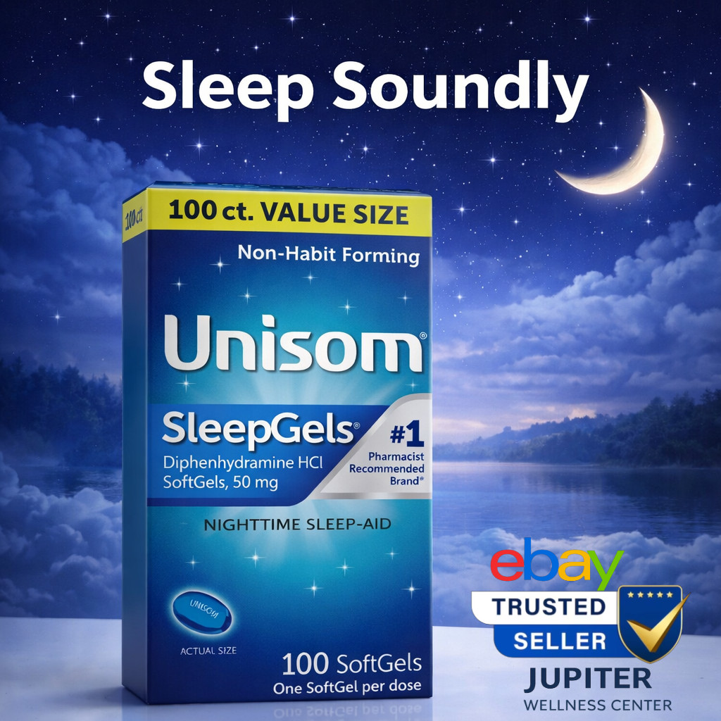 Unisom 50 mg Diphenhydramine Nighttime Sleep-Aid Softgels, 100 Count Exp 01/2027