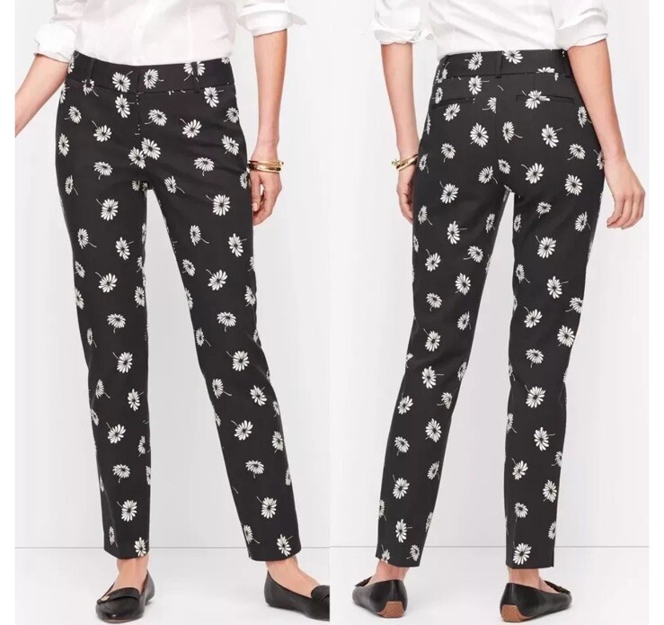 New Talbots Hampshire Ankle Pant Size 8 Black Daisy Print Straight Stretch 109