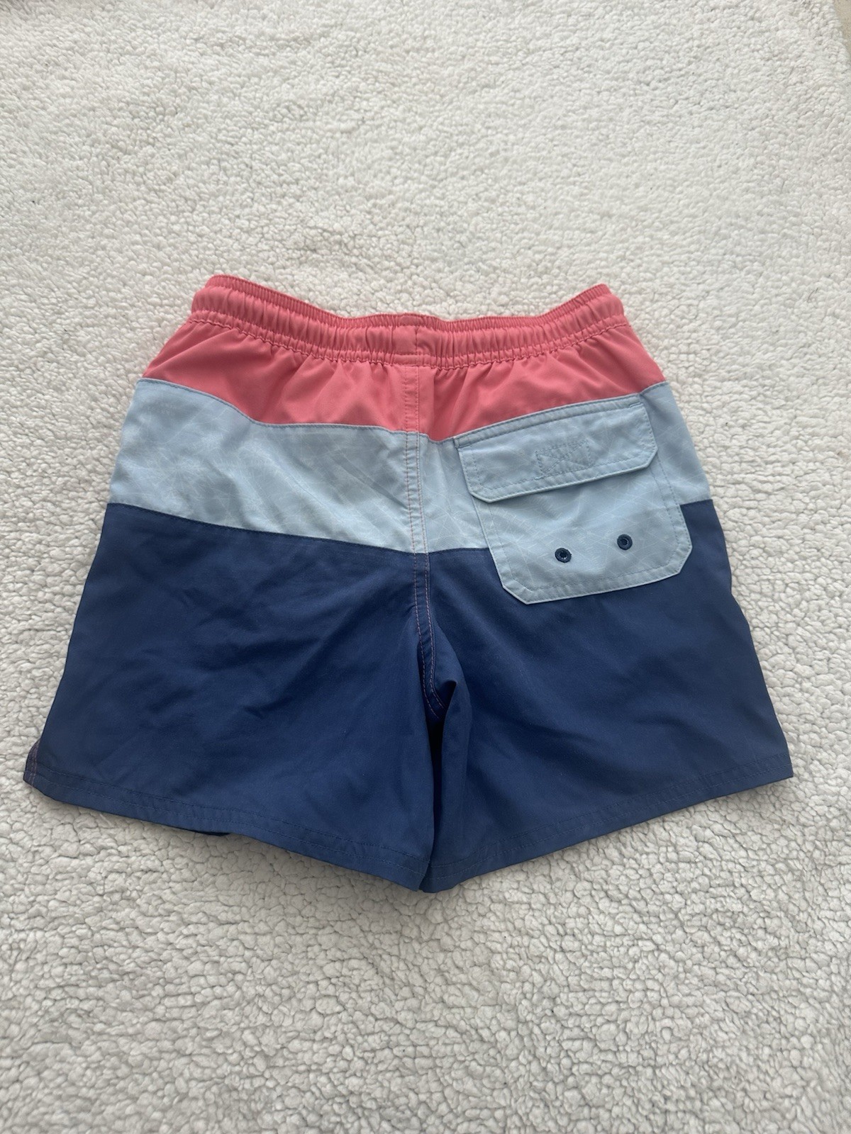 как выглядит Vineyard Vines Boys Swim Suit Trunks Size 7 Colorblock Boardshorts Blue Red фото