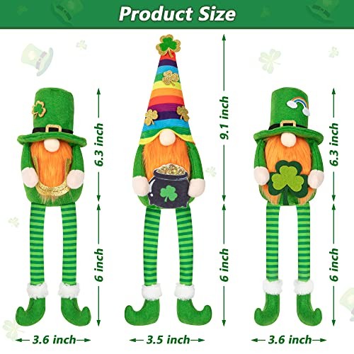 St Patricks Day Decorations, 3 Pack Plush St Patrick's Day Gnomes, Irish