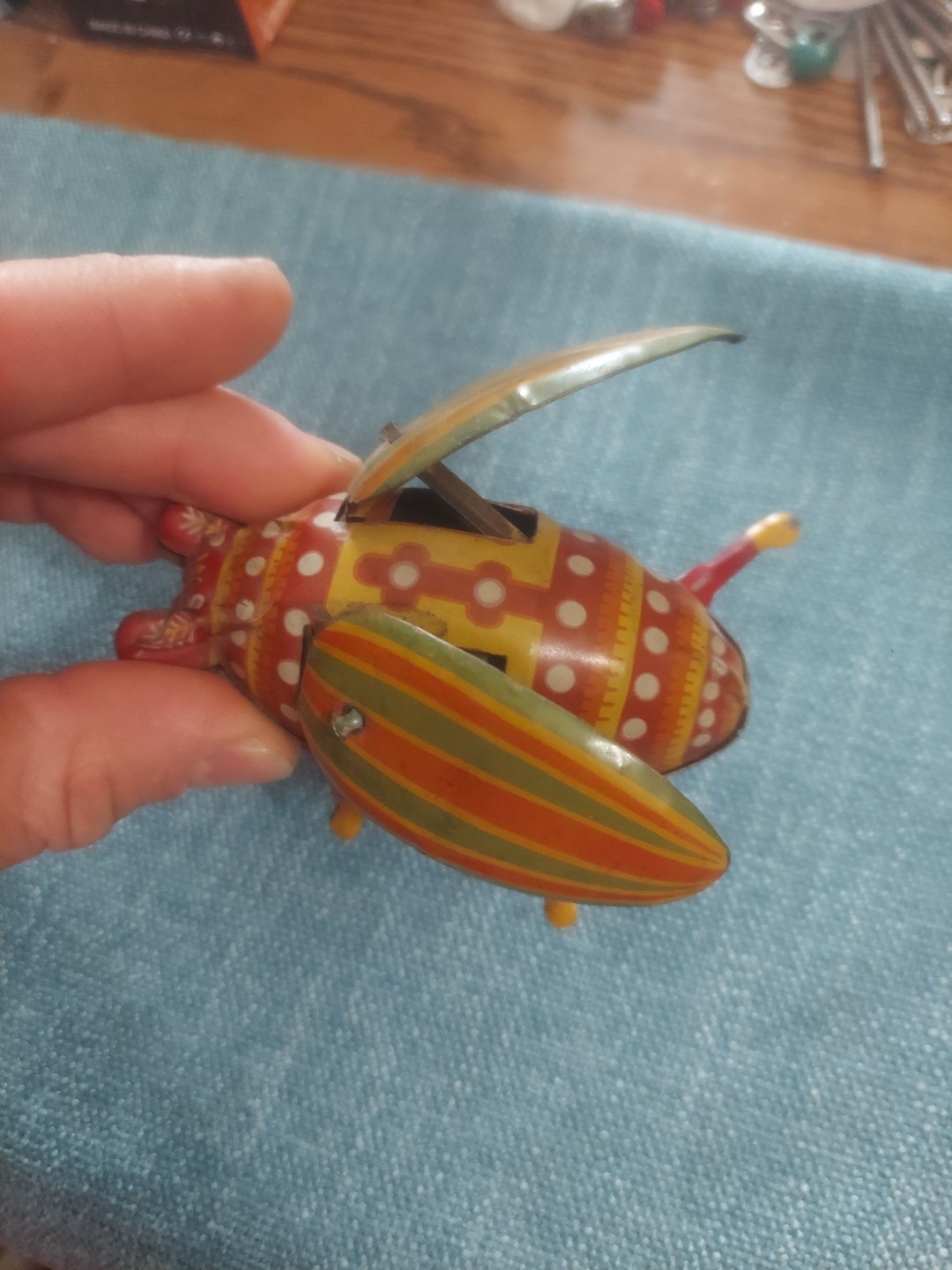 как выглядит VINTAGE LADY BUG BEETLE TOY WINDUP WITH FLAPPING WINGS - JAPAN фото