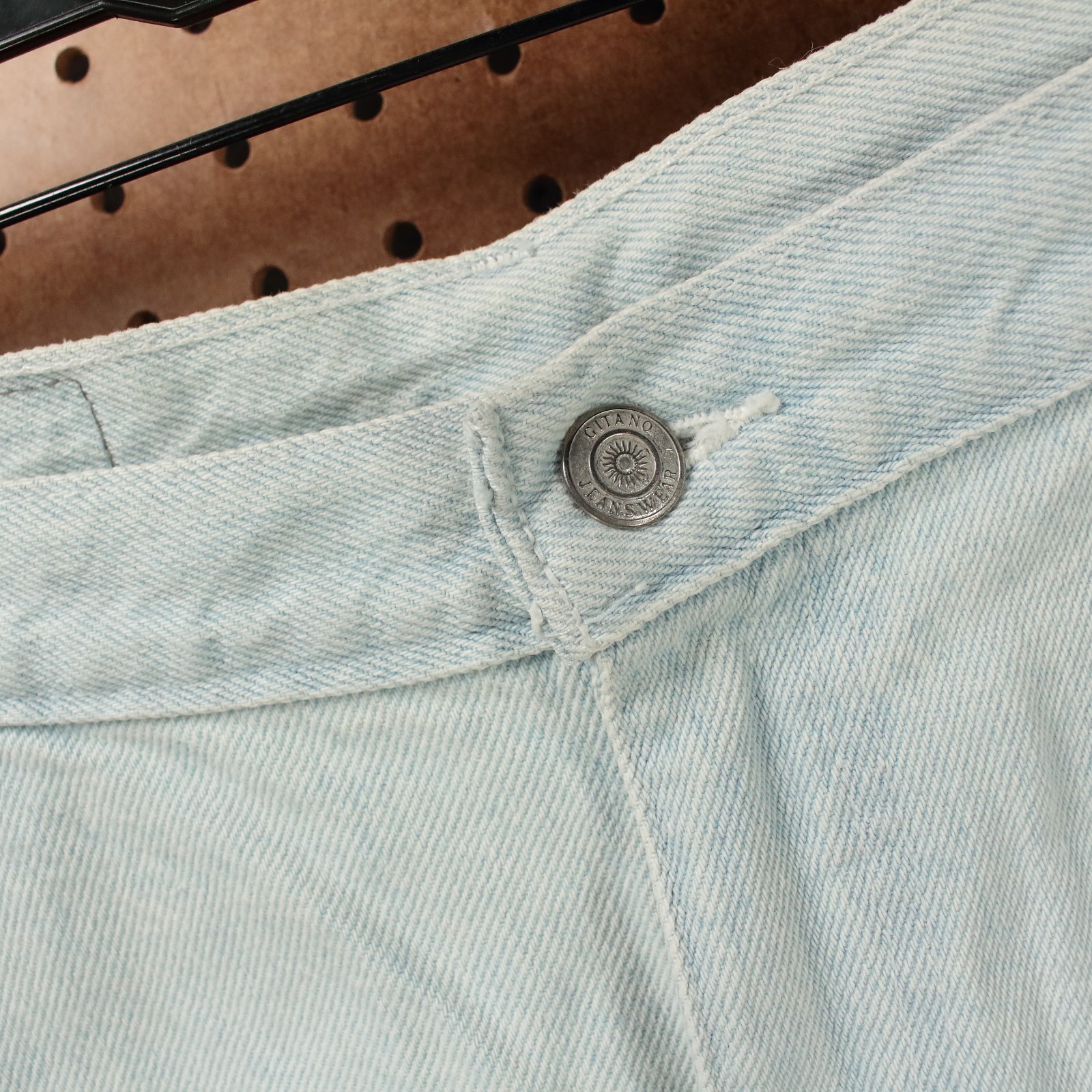 как выглядит vtg 80s 90s GITANO high waisted jean shorts 14 tag 31 waist light wash denim фото