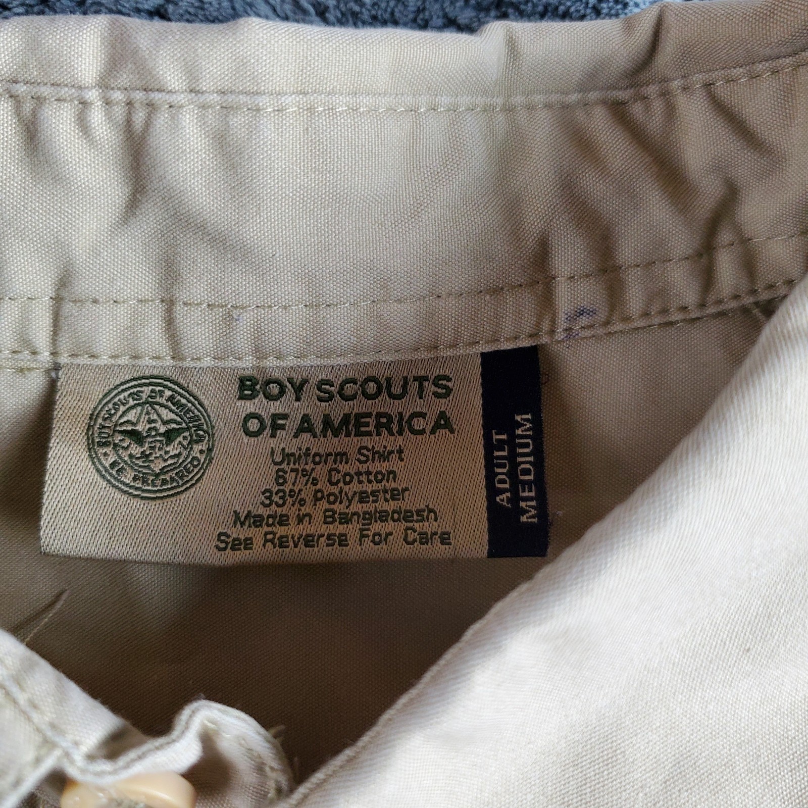 как выглядит Boy Scouts Of America Shirt Mens M Tan Uniform Button Patches Short Sleeve фото