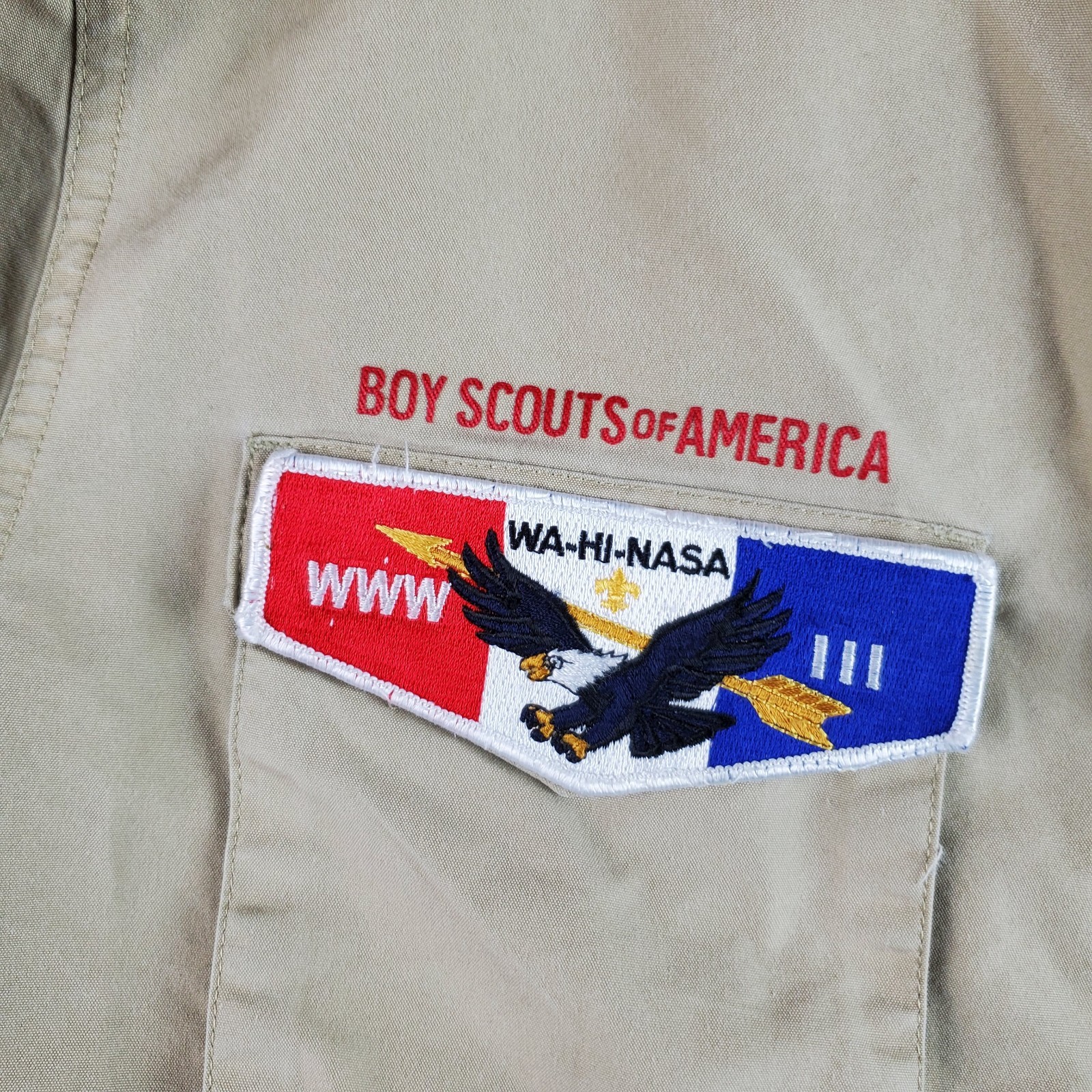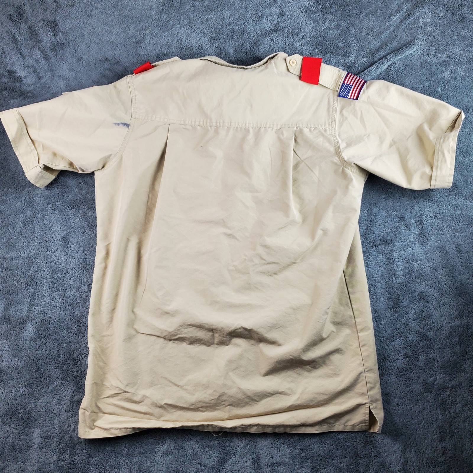 Boy Scouts Of America Shirt Men's M Tan Uniform Button Patches Short Sleeve