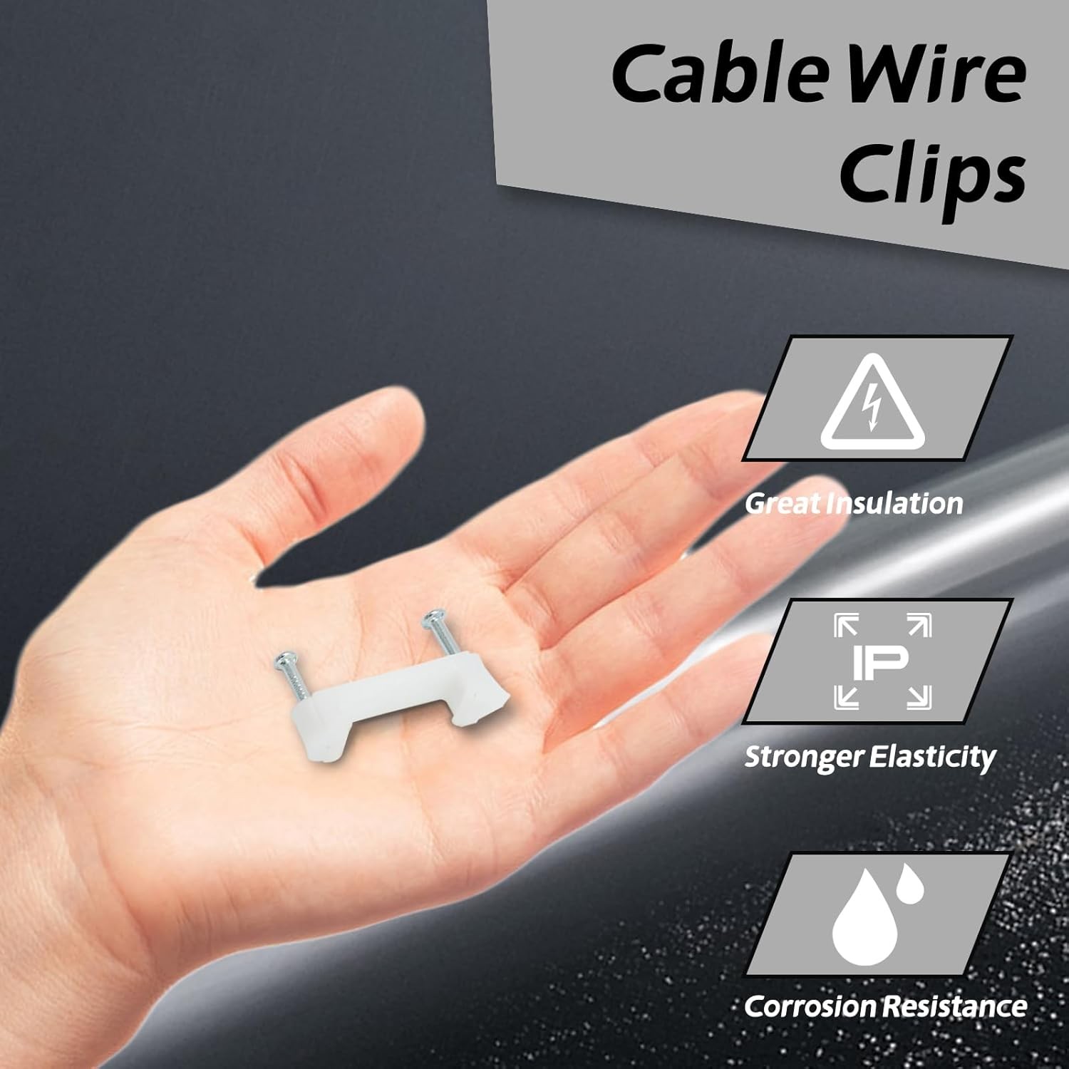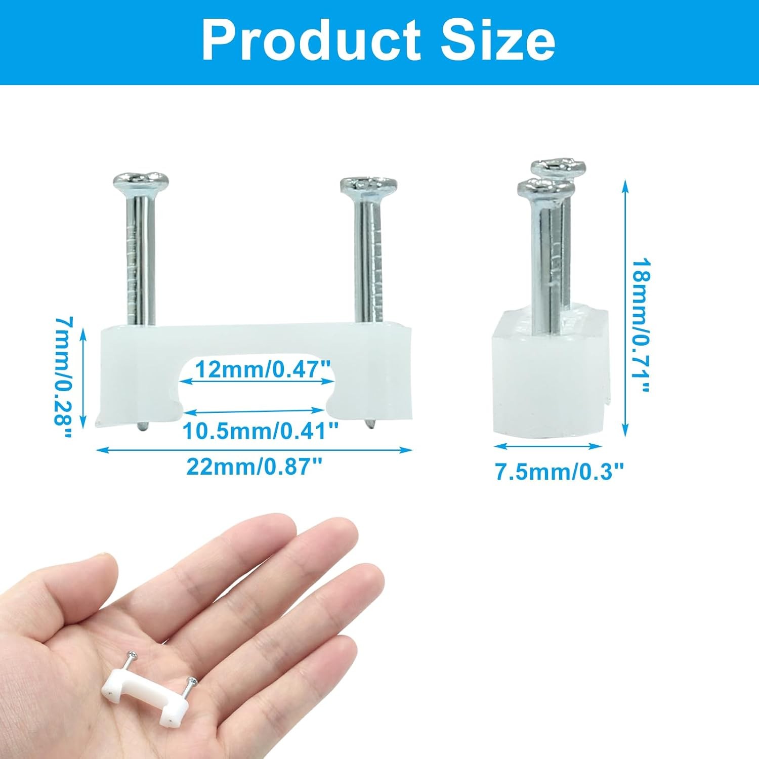 100 Pcs Cable Wire Clips with Two Steel Nails, 12mm White Cable Clips Nail Manag